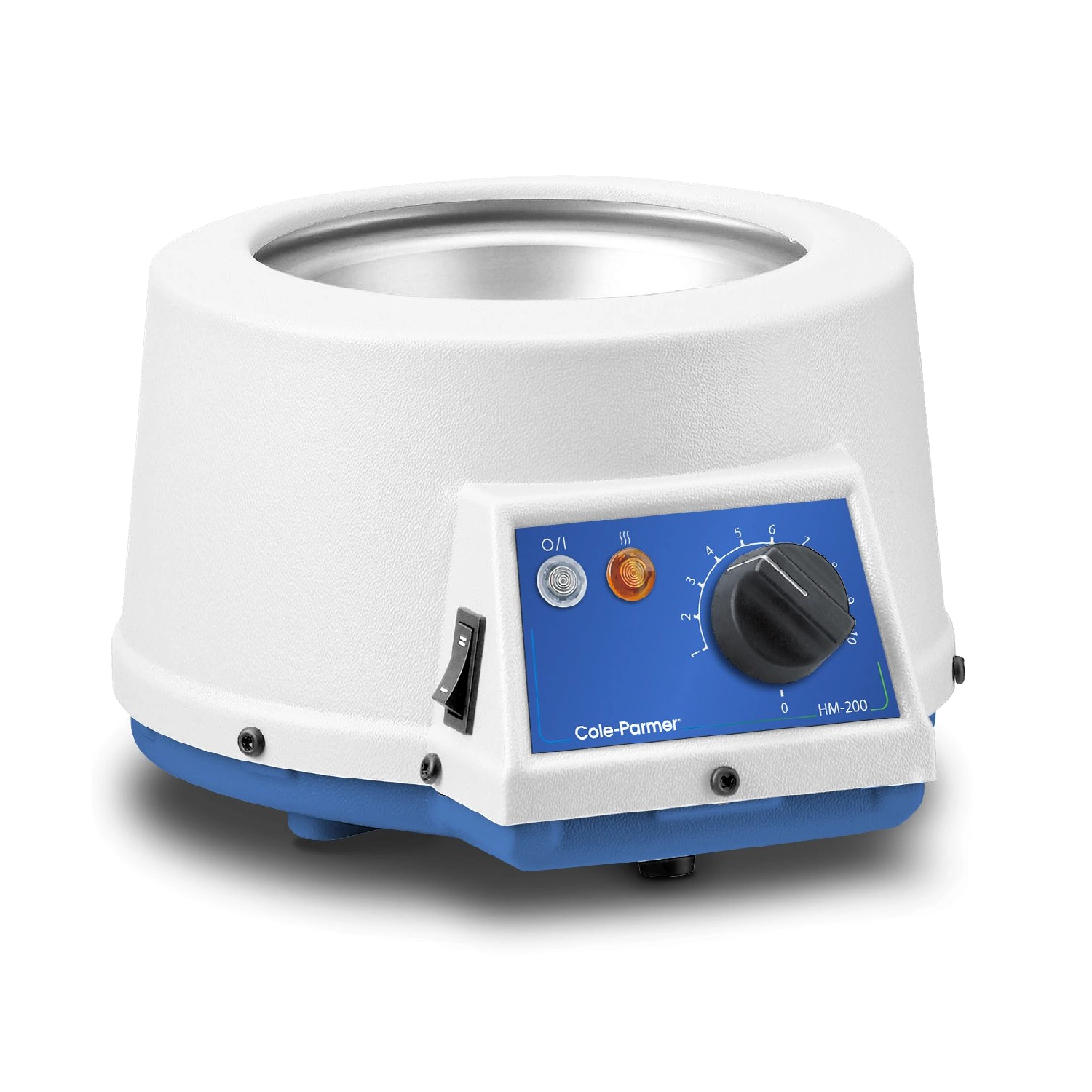 Płaszcze grzejne serii EM firmy Electrothermal, wchodzącej obecnie w skład Cole-Parmer, charakteryzują się bardzo estetyczną i odporną chemicznie obudową. Dobra izolacja i odpowiednia cyrkulacja powietrza zapobiega nagrzewaniu się obudowy. Uziemiona stalowa siatka zabezpiecza użytkownika przed porażeniem prądem w przypadku zalania elementu grzejnego.