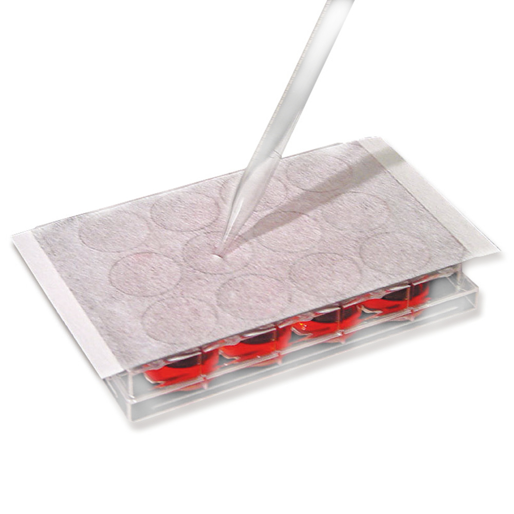 Błona uszczelniająca (do kultur komórkowych i płytek dołkowych Deep Well) wykonana ze sztucznego jedwabiu (sterylna lub niesterylna), samoprzylepna. Minimalizuje ewaporację i kontaminacje krzyżowe. Nie jest cytotoksyczna. Przekłuwalna. Perforowane końce do prostego i szybkiego przyklejania. Przepuszcza gaz w celu równomiernej wymiany powietrza i dwutlenku węgla.