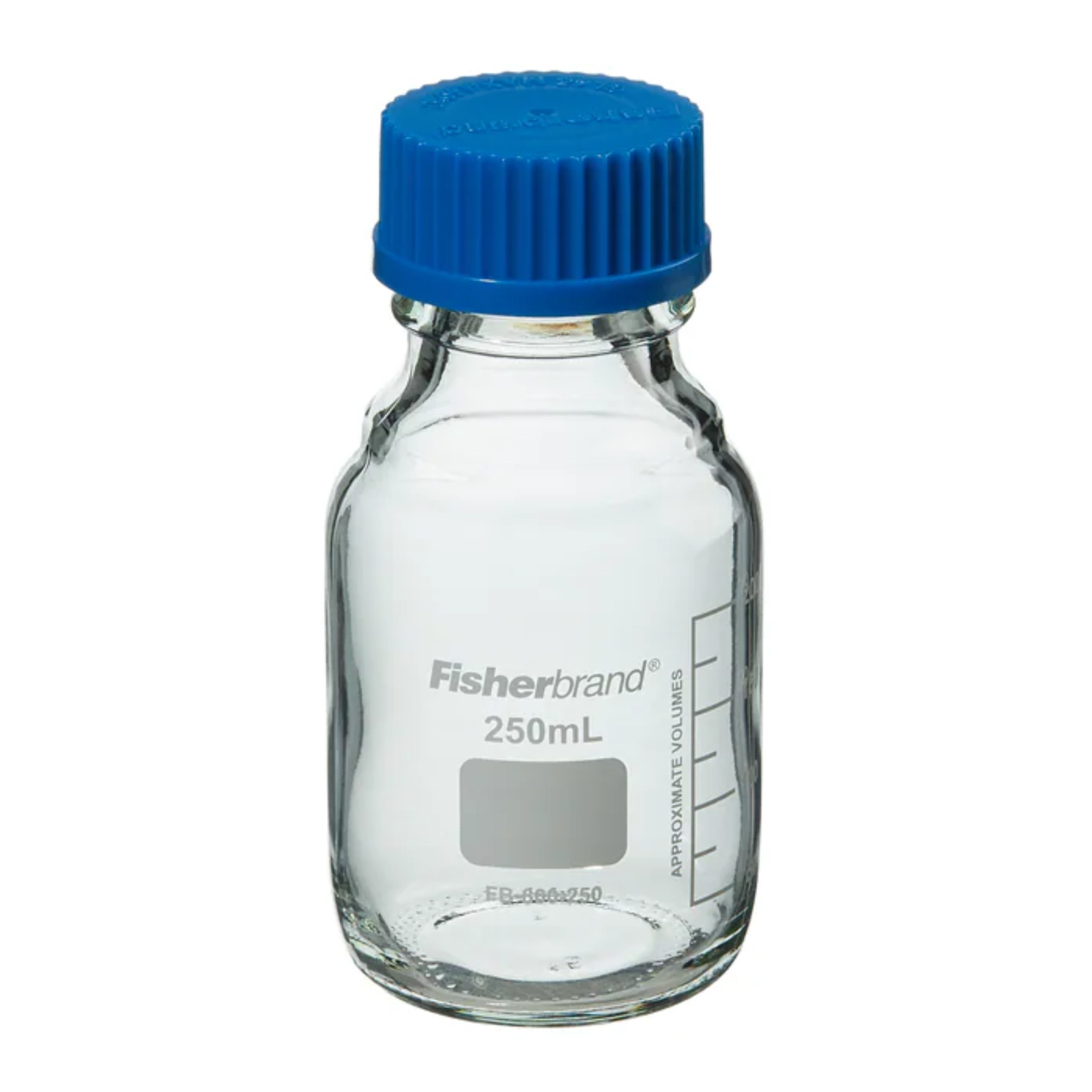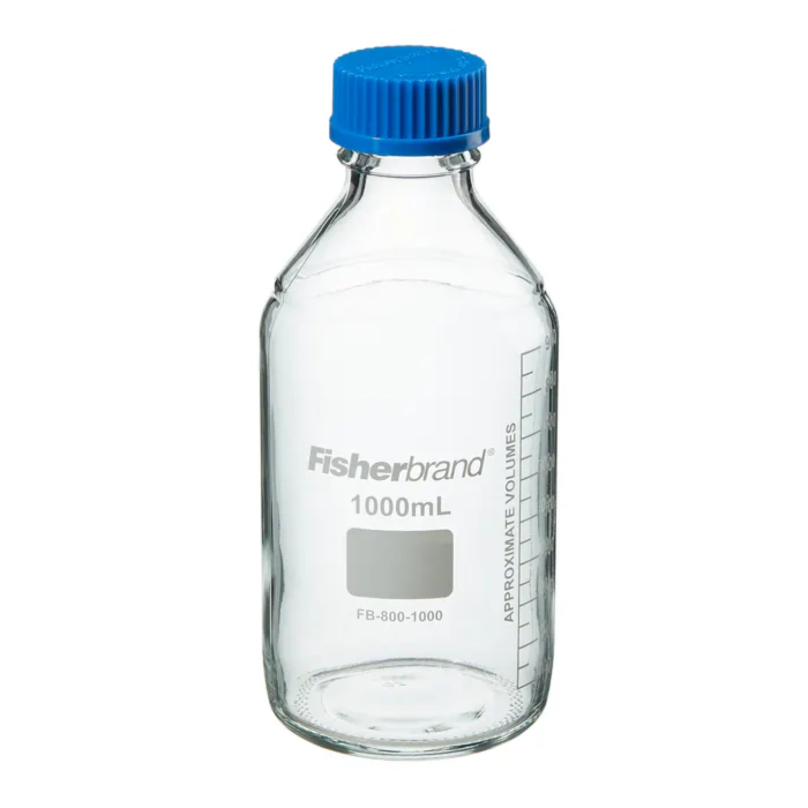 Butelki FisherbrandTM ze szkła borokrzemowego. W komplecie z pierścieniem i zakrętką z PP. Butelki posiadają białe pole opisowe, skalę objętości oraz gwint GL45. Autoklawowalne w 140 °C. Oferujemy butelki o pojemności 100-20000 ml. Sprzedawane pojedynczo.
