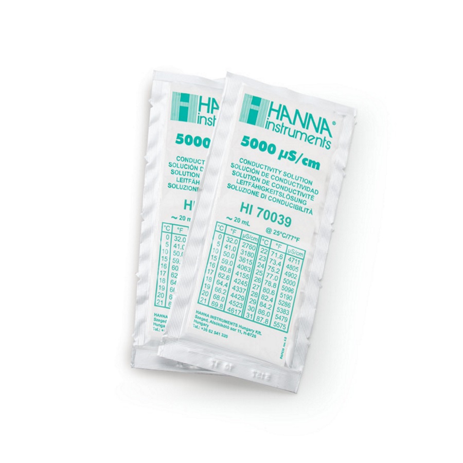 Roztwory kalibracyjne dla mierników przewodności. W butelkach o poj. 500 ml bądź w saszetkach o poj. 20 ml (25 sztuk w opakowaniu).