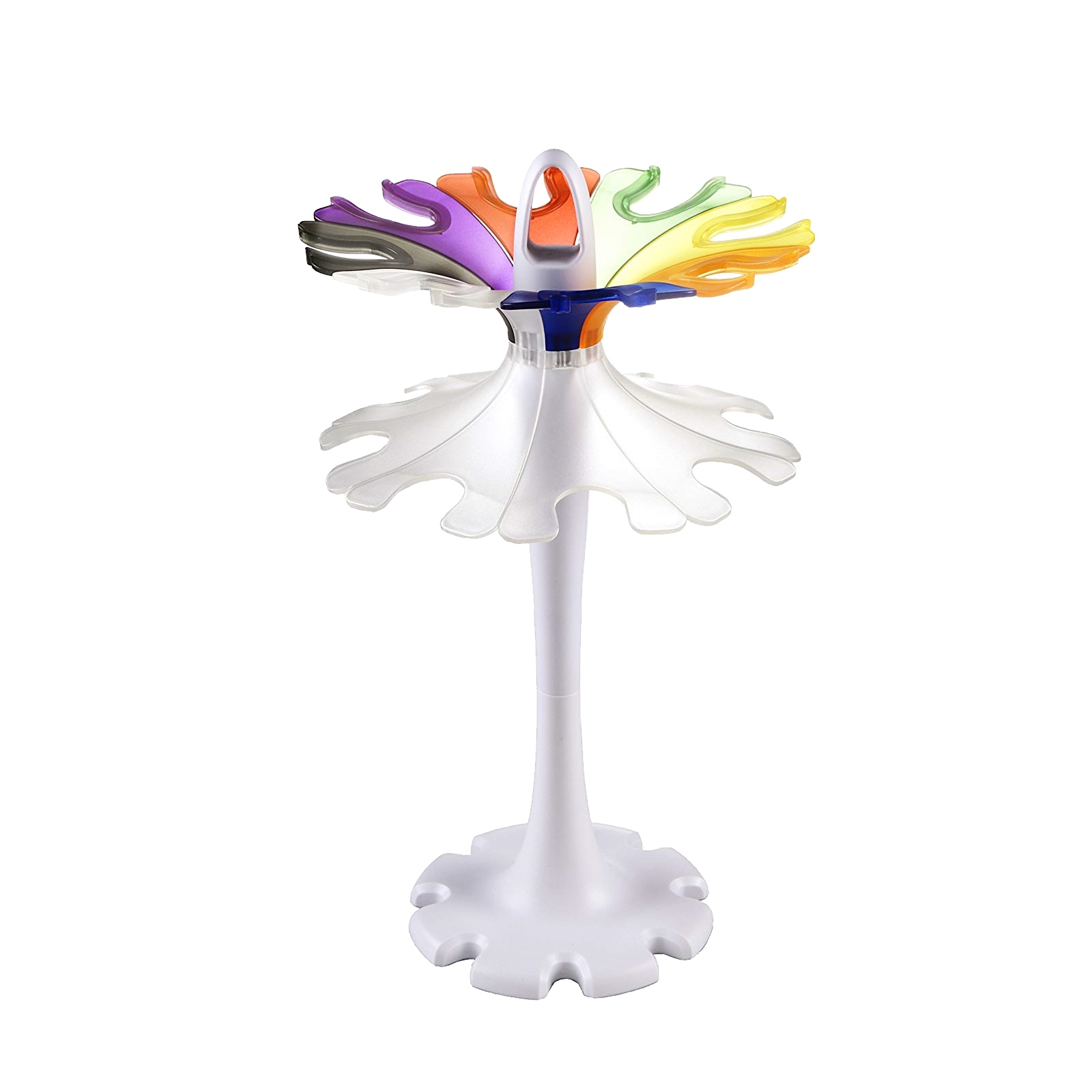 Uniwersalny statyw karuzelowy do pipet, mieszczący do 12 pipet jednokanałowych lub 3 pipety jedno- i 3 wielokanałowe. Statyw posiada zarówno możliwość ustawienia na blacie, jak podwieszenia go pod półką lub szafką aby zwiększyć dostępną przestrzeń roboczą. Pasuje do niego większość pipet dostępnych na rynku. Uchwyty na pipety są wykonane z gumy. Dostarczany ze śrubą do przykręcenia pod półką.