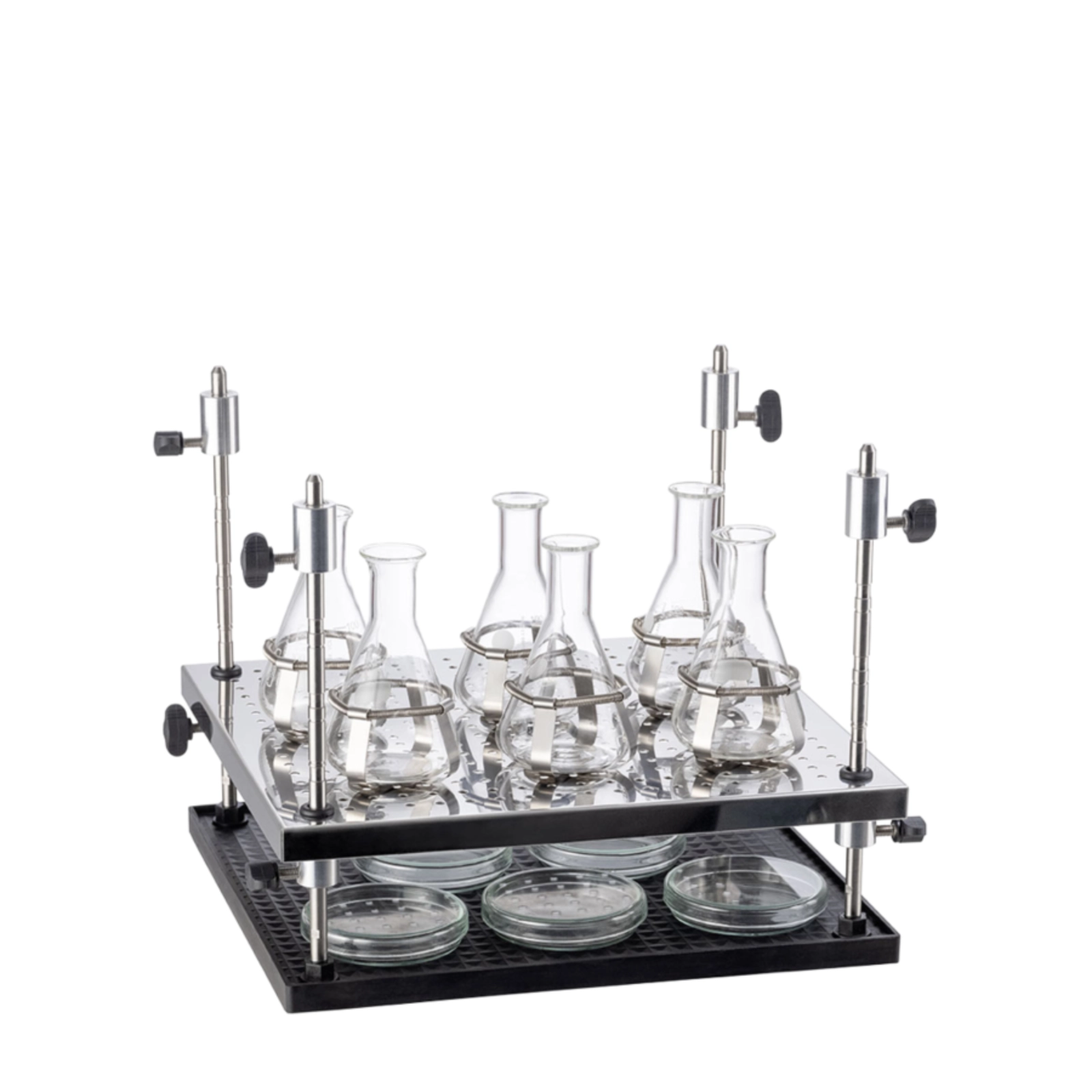 Różnorodne uchwyty mocujące dostosowane do kolb o pojemnościach od 25 ml do 2000 ml. Kompatybilne z platformami do montażu uchwytów mocujących – 100, 1000 oraz 2000.