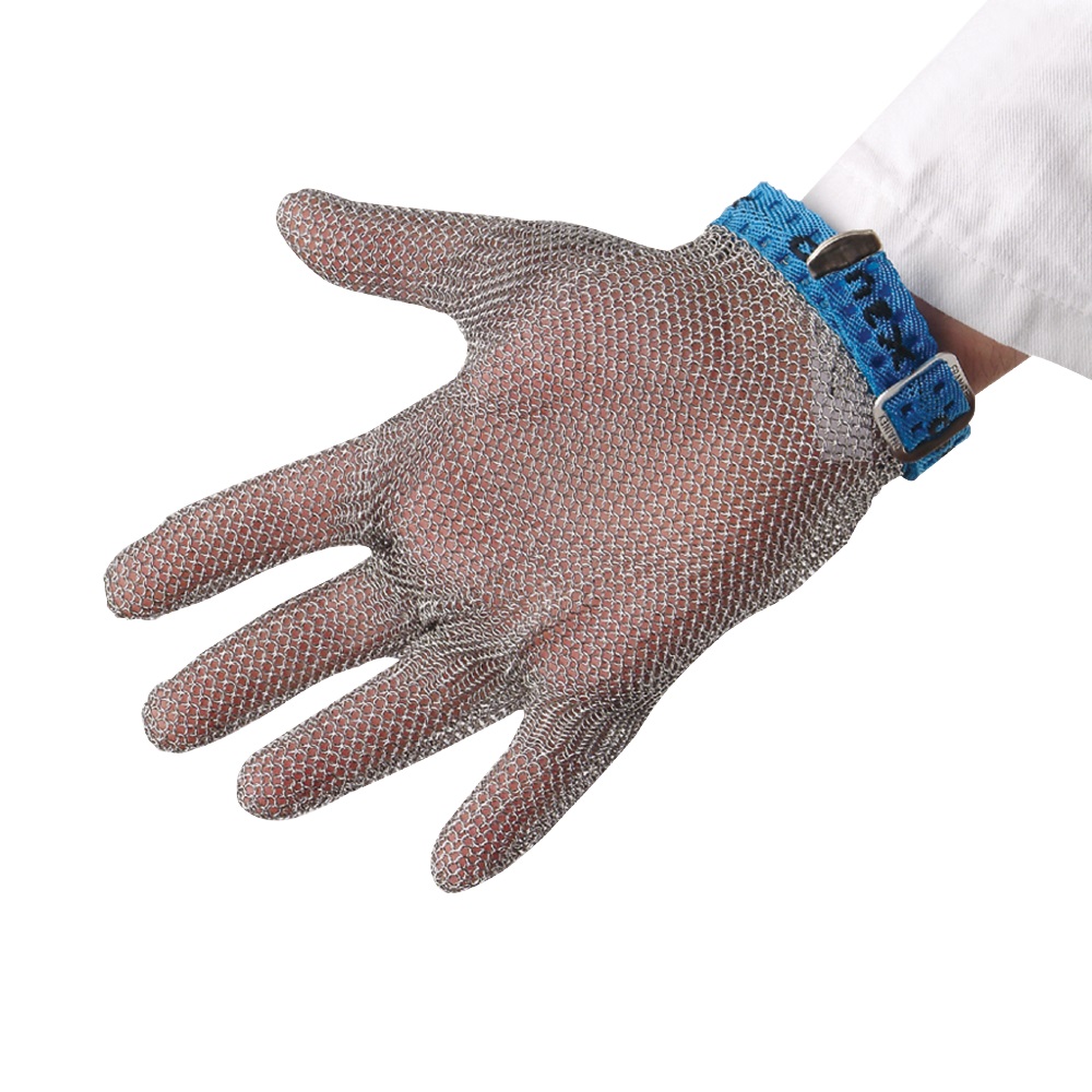 Krótkie, pięciopalczaste rękawice siatkowe ze stali szlachetnej (AISI 316 L). Optymalna ochrona przed przecięciem i ukłuciem. Lekkie i ergonomiczne. Łatwe w pielęgnacji i dezynfekcji. Pasują na obie ręce. Taśma tekstylna z klamrą regulacyjną na wysokości przegubu pozwala na indywidualne dopasowanie szerokości do potrzeb użytkownika.