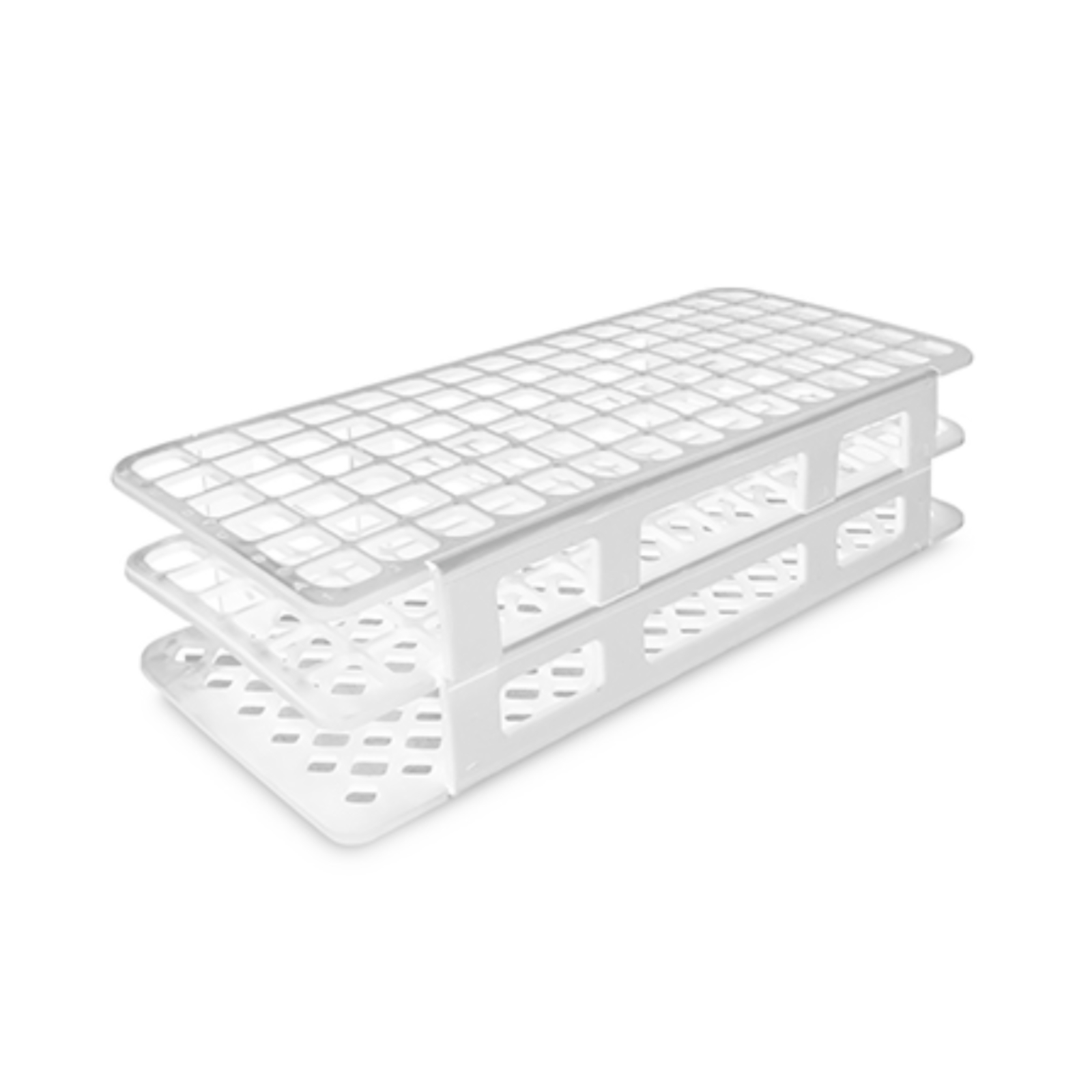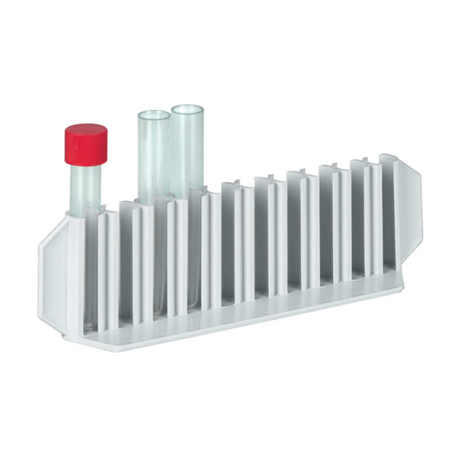 Lekki statyw na probówki o śr. 12, 18 lub 20 mm, wykonany z polipropylenu.