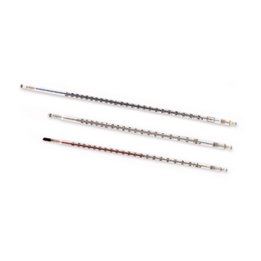 Termometry precyzyjne do pomiaru niskich temperatur, z możliwością legalizacji. Rurkowy. Podziałka co 1°C. Kapilara: niebieska, świecąca, pryzmatyczna, wypełniona pentanem.