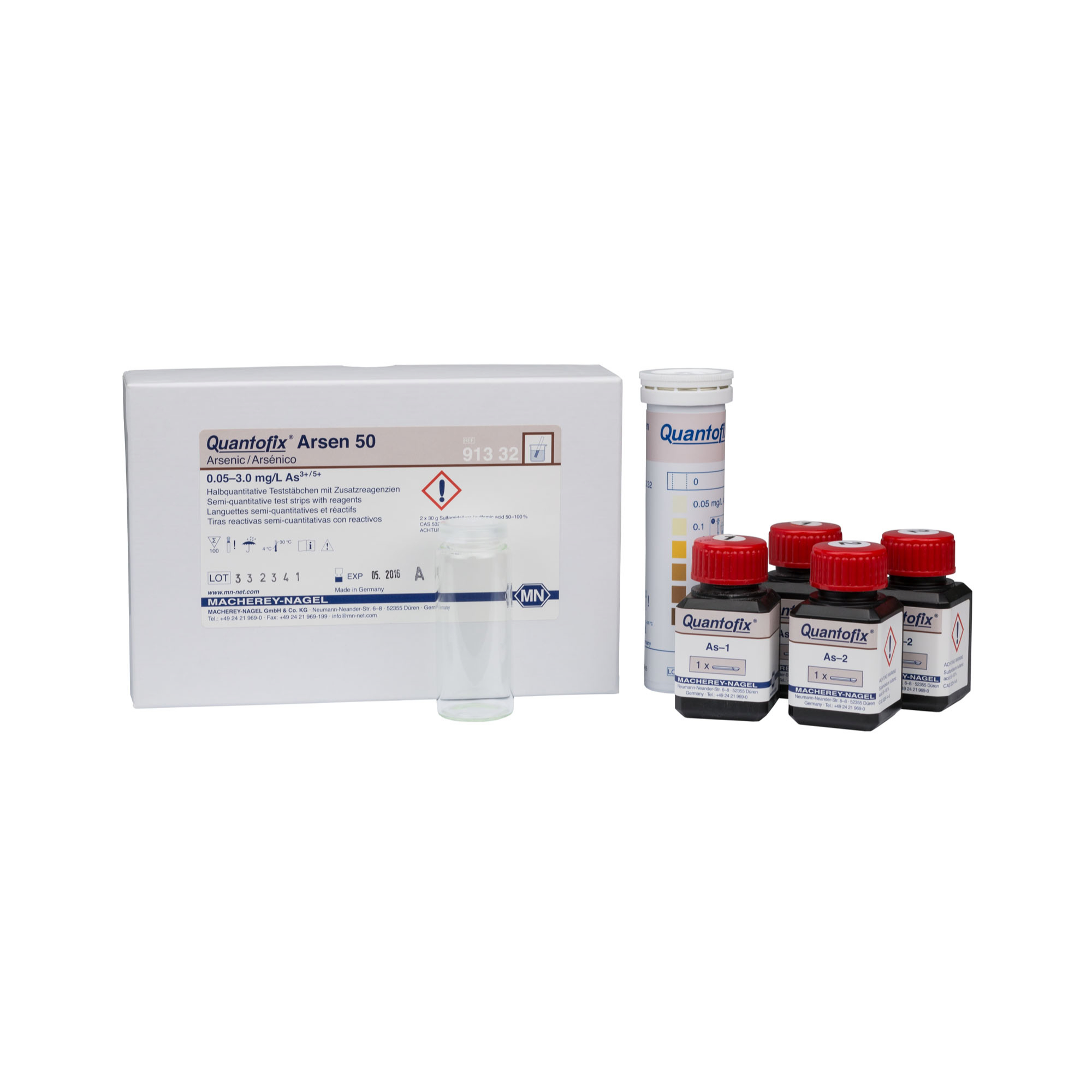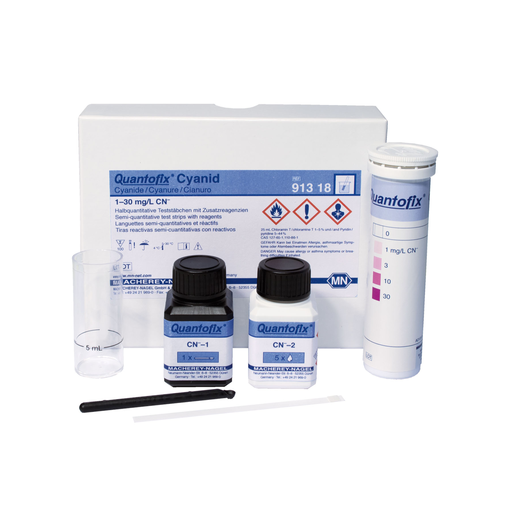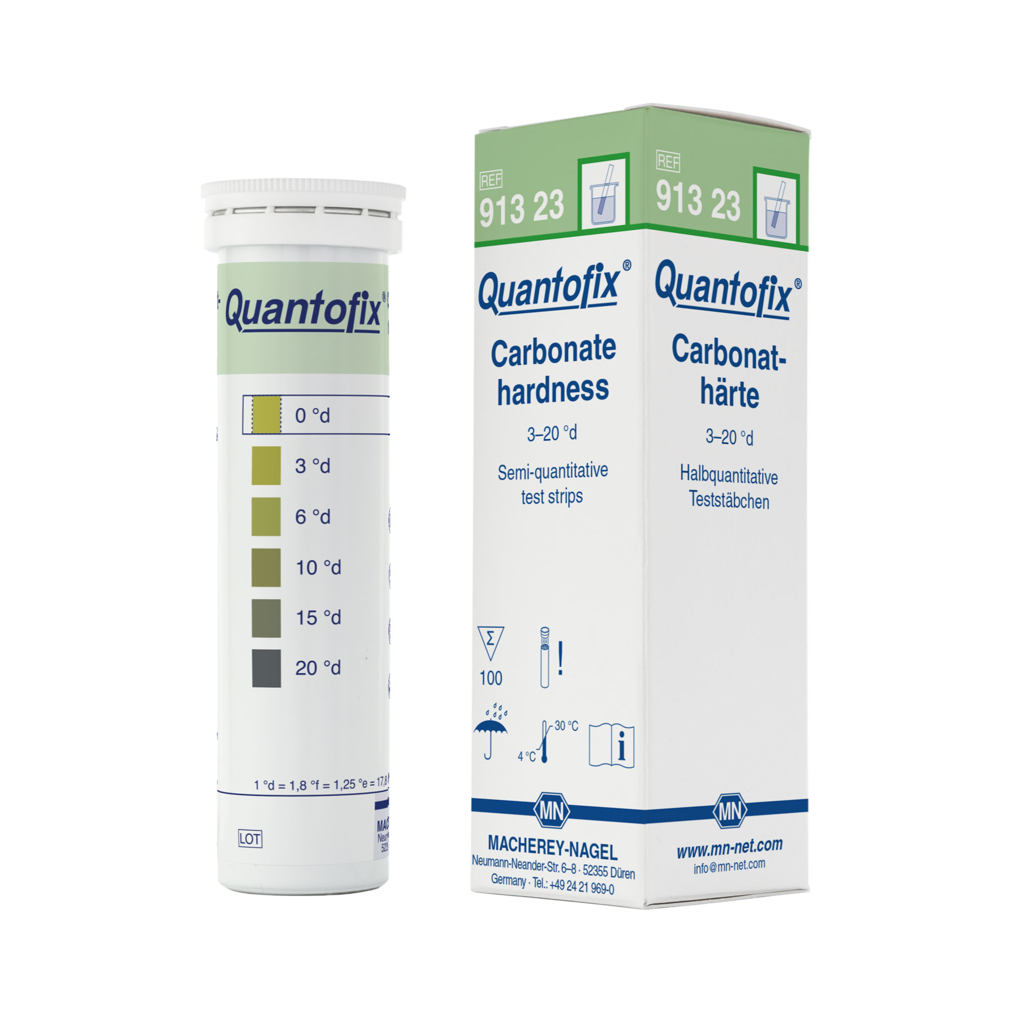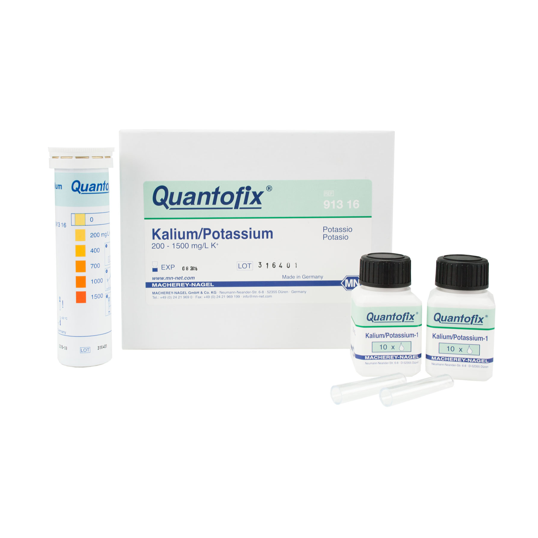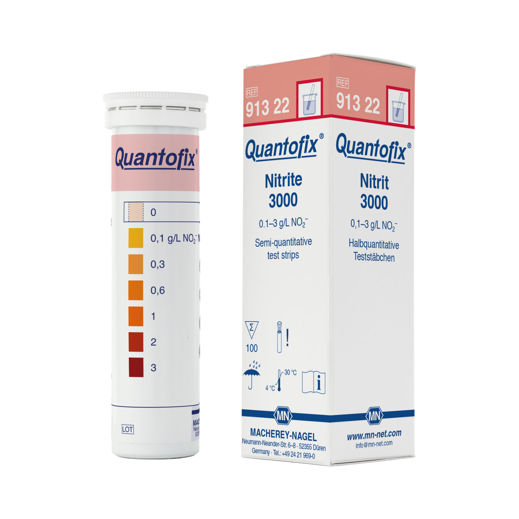 Półilościowe paski testowe Quantofix do oznaczania żelaza. Zmiana barwy z białej na niebieskofioleową lub ciemnoczerwoną. Wykorzystywane w laboratoriach, przemyśle wodociągowym, rolnictwie, monitorowaniu jakości wody pitnej.