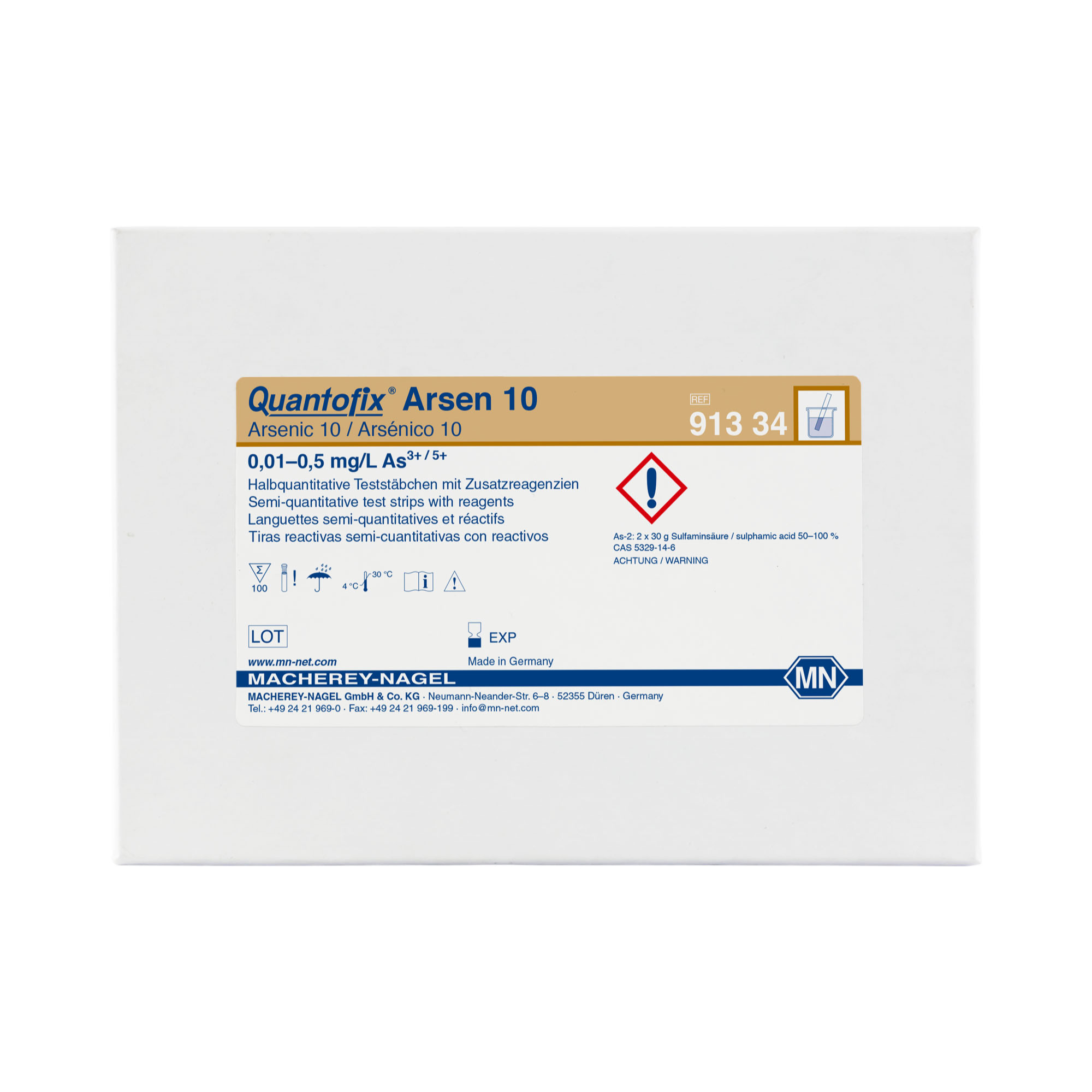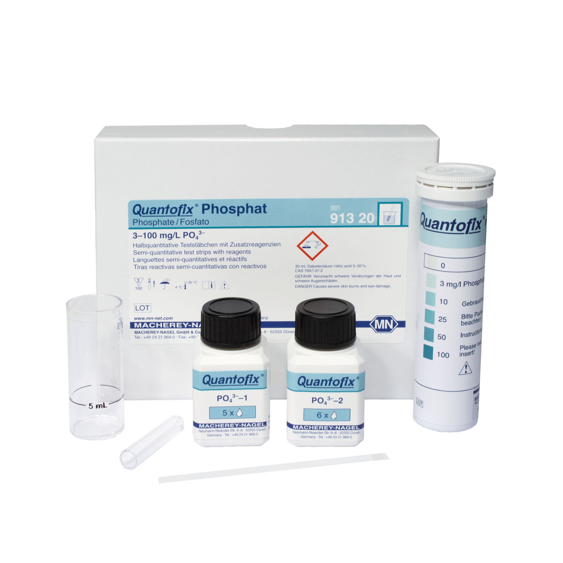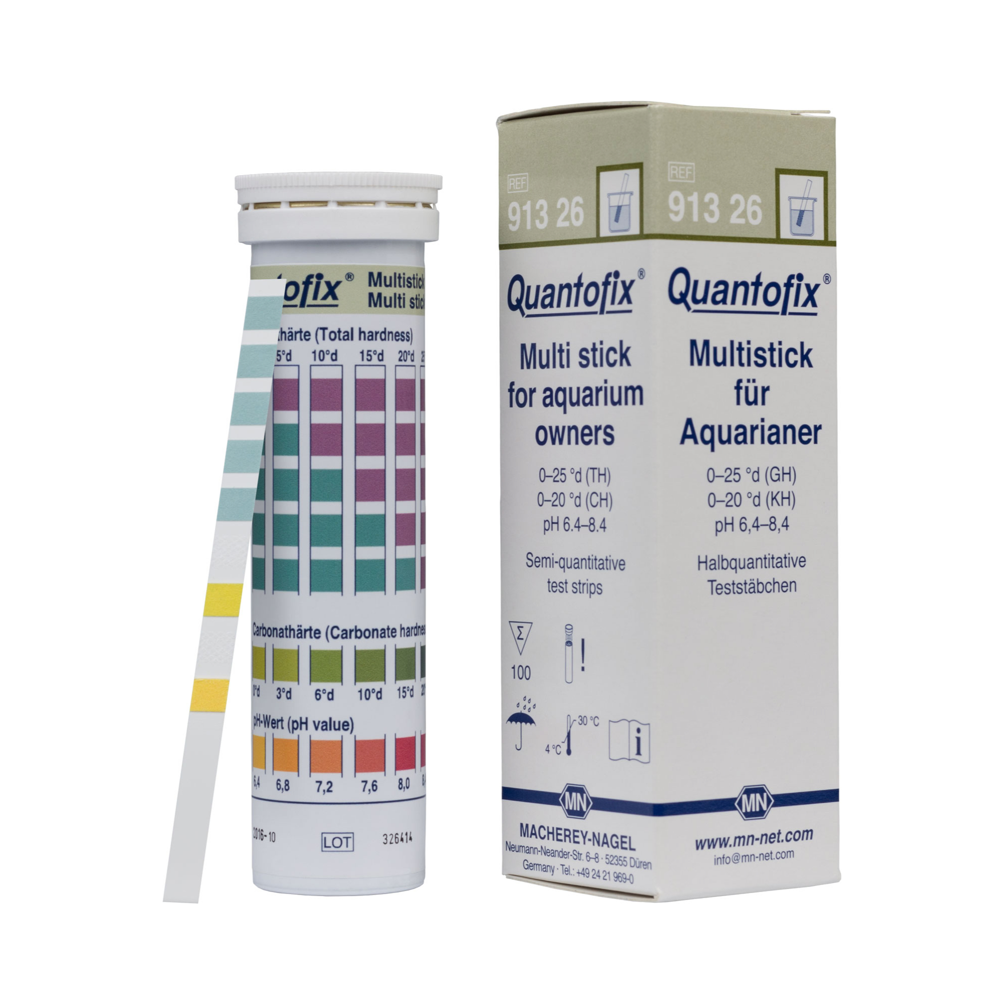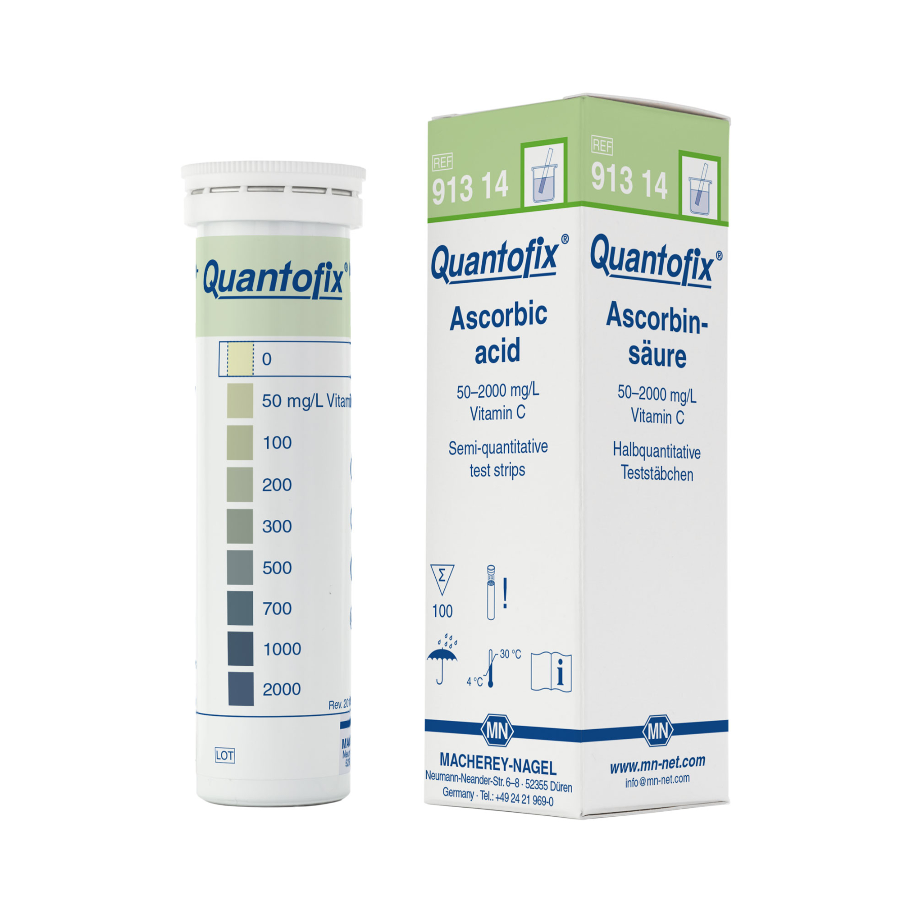 Półilościowe paski testowe Quantofix do oznaczania żelaza. Zmiana barwy z białej na niebieskofioleową lub ciemnoczerwoną. Wykorzystywane w laboratoriach, przemyśle wodociągowym, rolnictwie, monitorowaniu jakości wody pitnej.