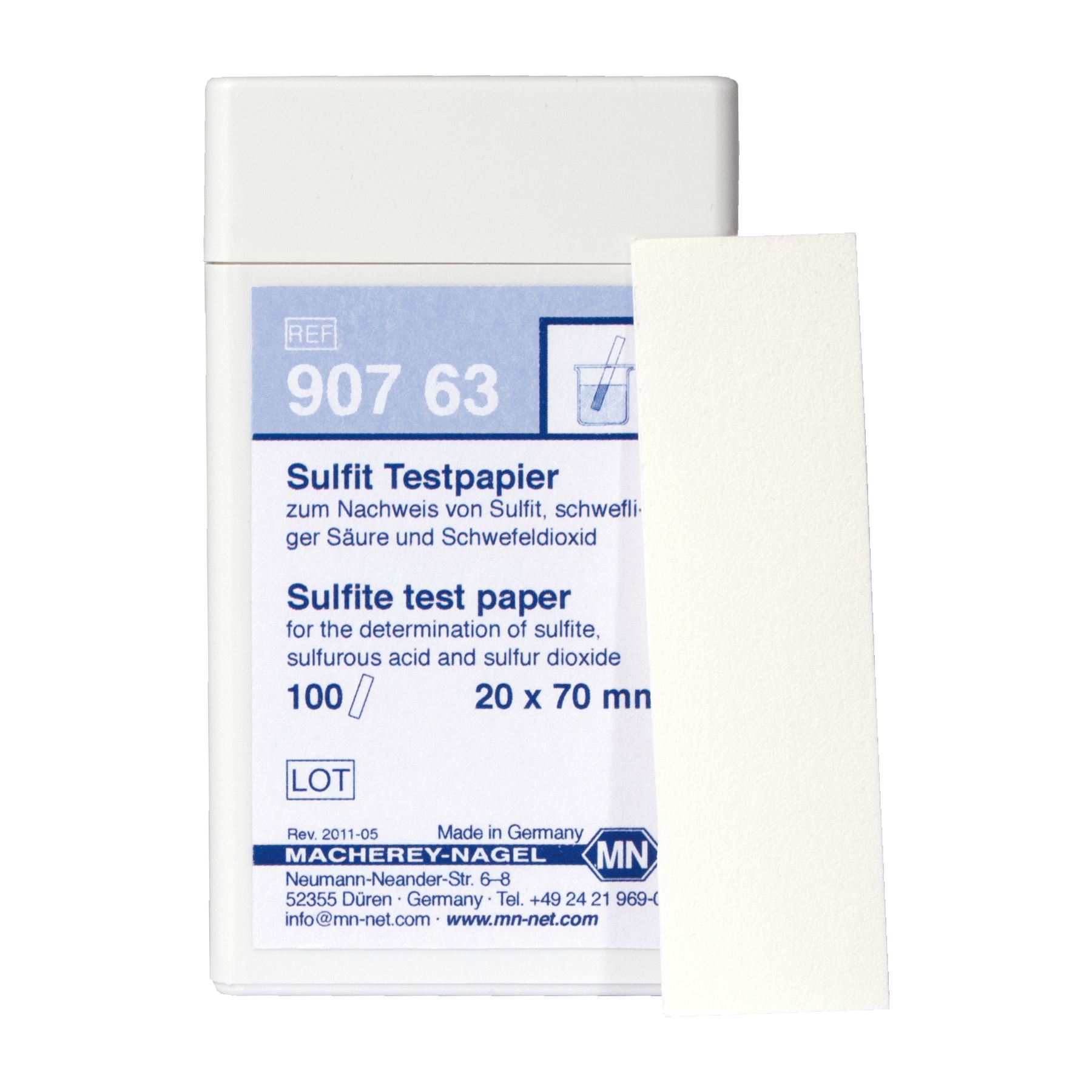 Papierki do oznaczeń jakościowych Siarczyny umożliwiają szybkie i pewne wykrywanie jonów SO₃²⁻ (siarczanów (IV)) lub wolnego ditlenku siarki (SO₂). W zależności od stężenia, biały papierek testowy zabarwia się na kolor różowy (do ceglastoczerownego). Próg wykrywalności to 10 mg/l Na₂SO₃. Opakowanie zawiera 100 pasków.