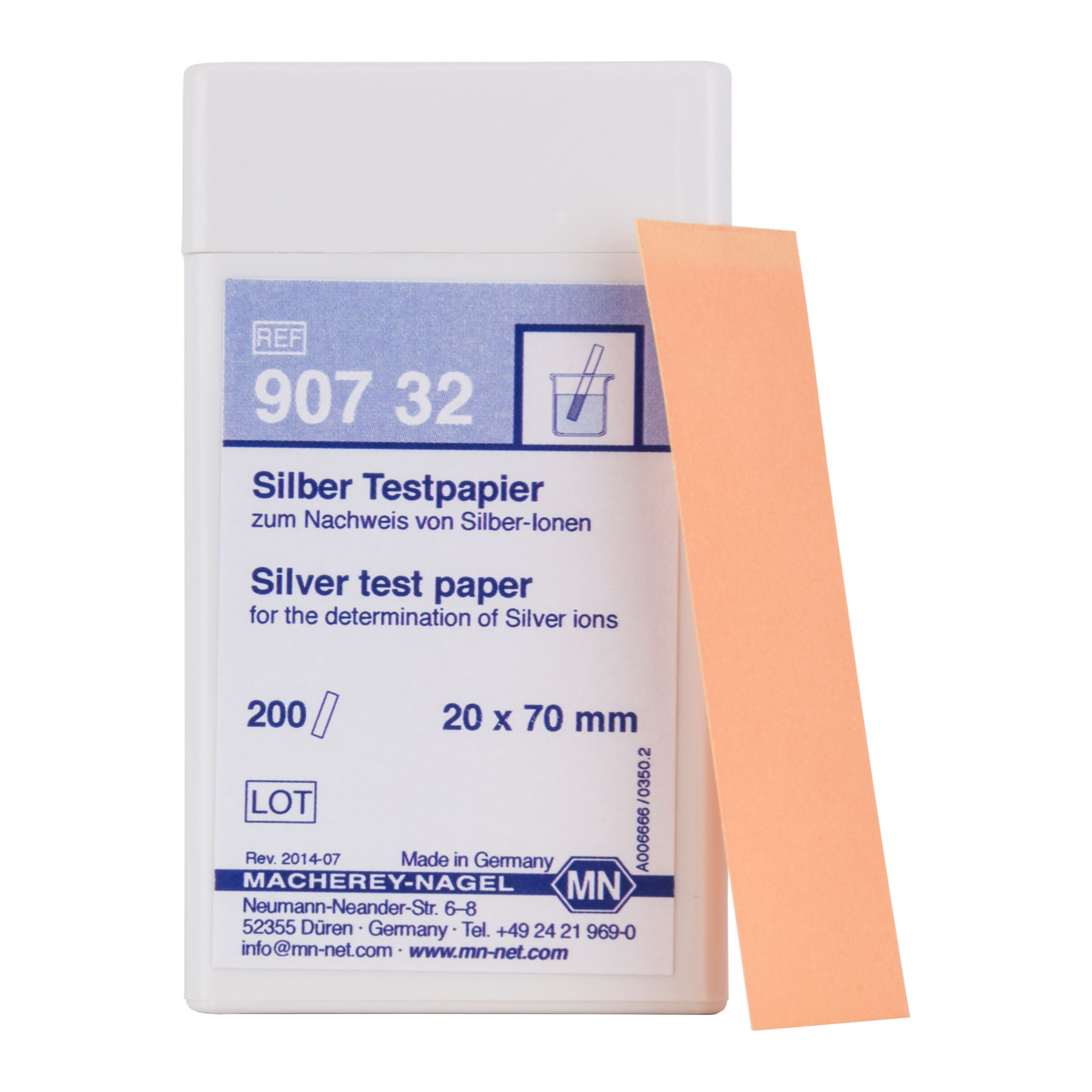 Papierki do oznaczeń jakościowych Srebro służą do wykrywania jonów Ag(I) w roztworach. W ich obecności łososiowoczerwony papierek testowy zmienia barwę na czerwono-fioletową. Próg wykrywalności wynosi 20 mg/l Ag+.