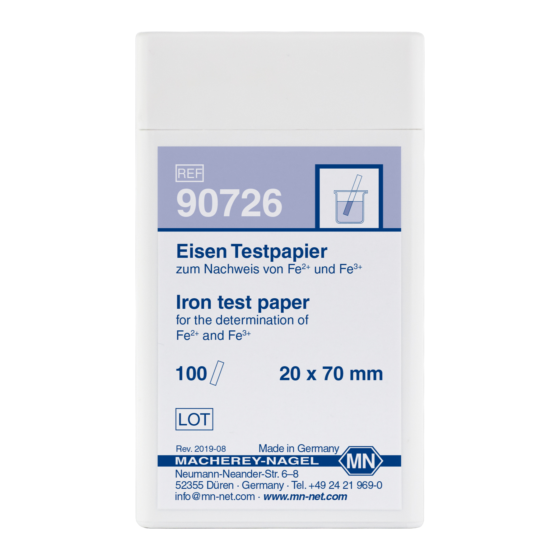 Papierki do oznaczeń jakościowych Żelazo są przeznaczone do wykrywania jonów Fe(II) oraz Fe(III). W ich obecności jasnożółty papierek testowy zmienia barwę na czerwono-brązową. Próg wykrywalności wynosi 10 mg/l Fe2+ lub Fe3+.