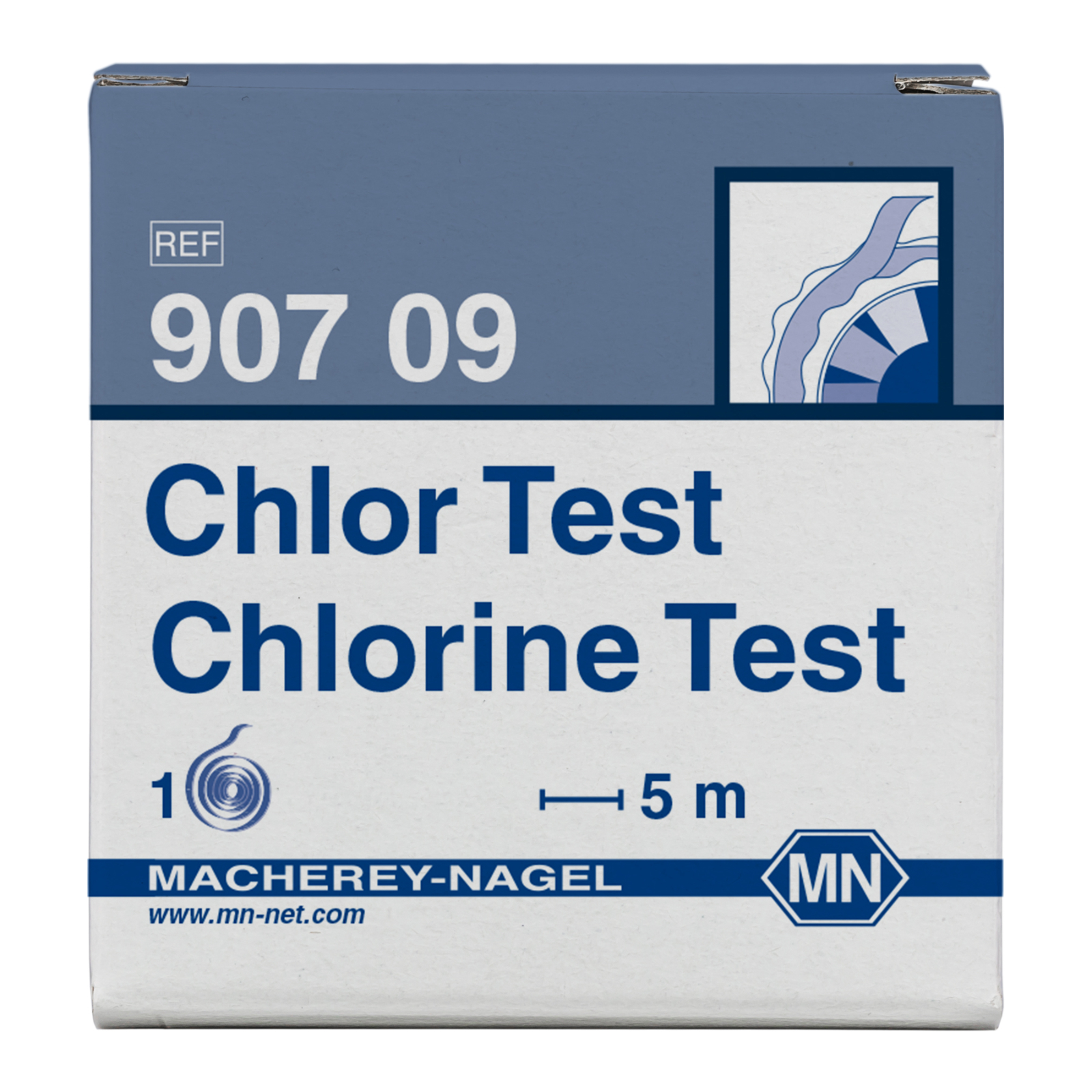 Paski wskaźnikowe Macherey-Nagel do półilościowego oznaczania chloru. W obecności Cl2 paski wskaźnikowe zmieniają barwę z białej na niebieskofioletową. Paski te są szczególnie polecane do wykrywania chloru w roztworach dezynfekcyjnych stosowanych np. w przemyśle spożywczym czy w przemysłowej hodowli zwierząt. Opakowanie zawiera rolkę o dł. 5 m długości i szerokości 10 mm szerokości.