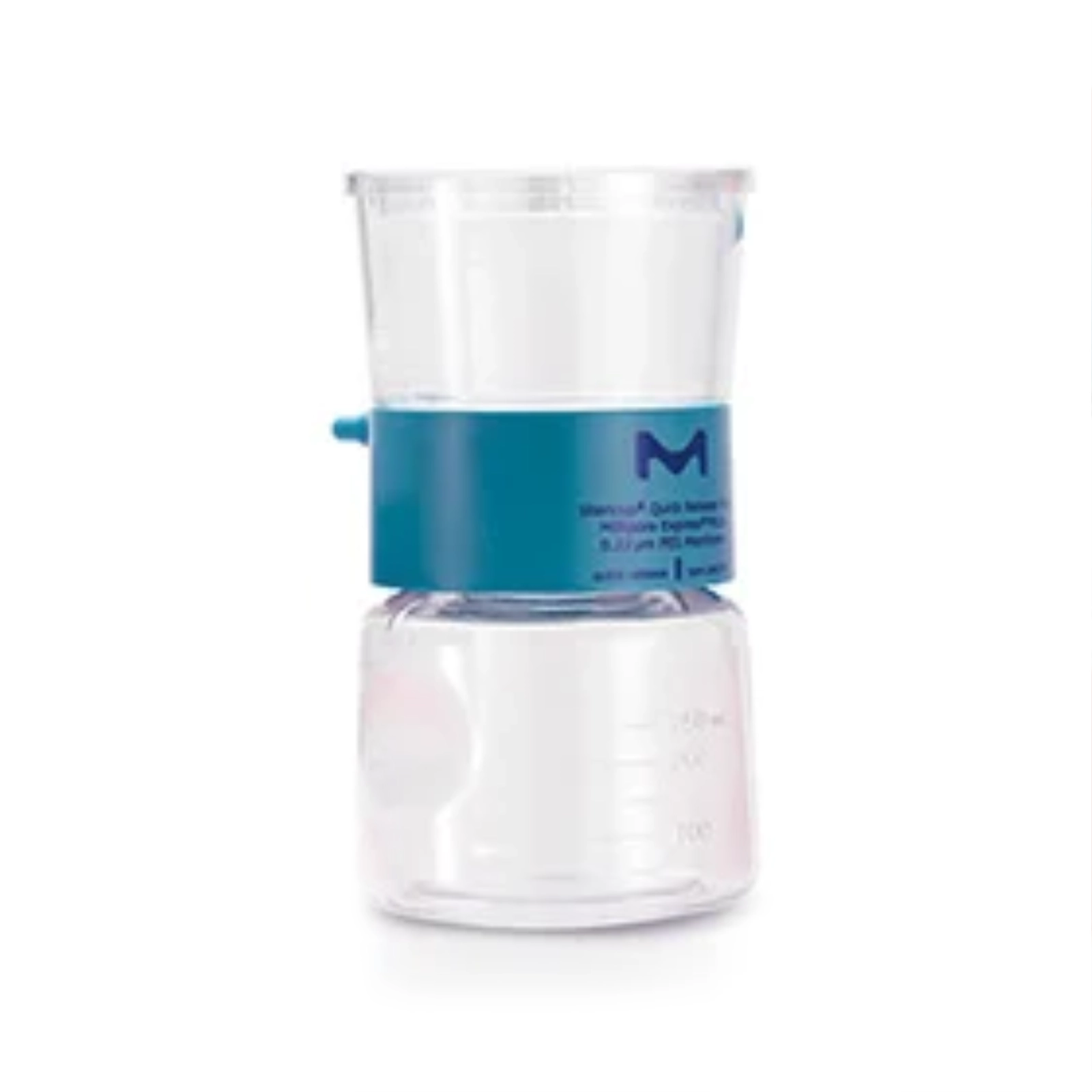 Próżniowe i sterylne filtry Steritop służą do rutynowej sterylizującej filtracji hodowli tkankowych, mediów hodowlanych, dodatków modyfikujących, buforów oraz innych roztworów wodnych. Charakteryzują się niskim powinowactwem do białek. Filtracja odbywa się w podciśnieniu, co powoduje wysoką prędkość przepływu i skraca czas trwania procesu. Membrana z PES.