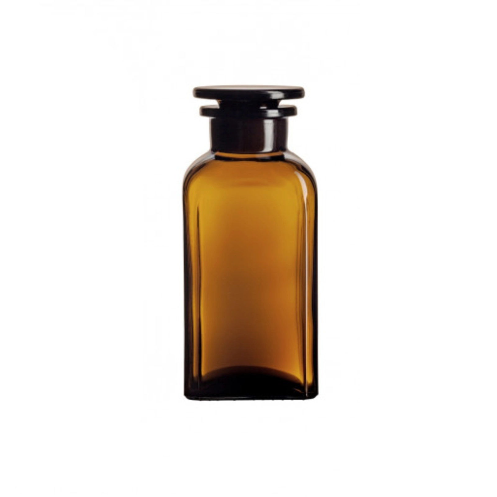 Oranżowe butelki o prostokątnej podstawie z szeroką szyją wyprodukowane ze szkła sodowo-wapniowego. W komplecie z okrągłym szerokim korkiem z odpowiednim szlifem. Dostępne w sześciu rozmiarach.