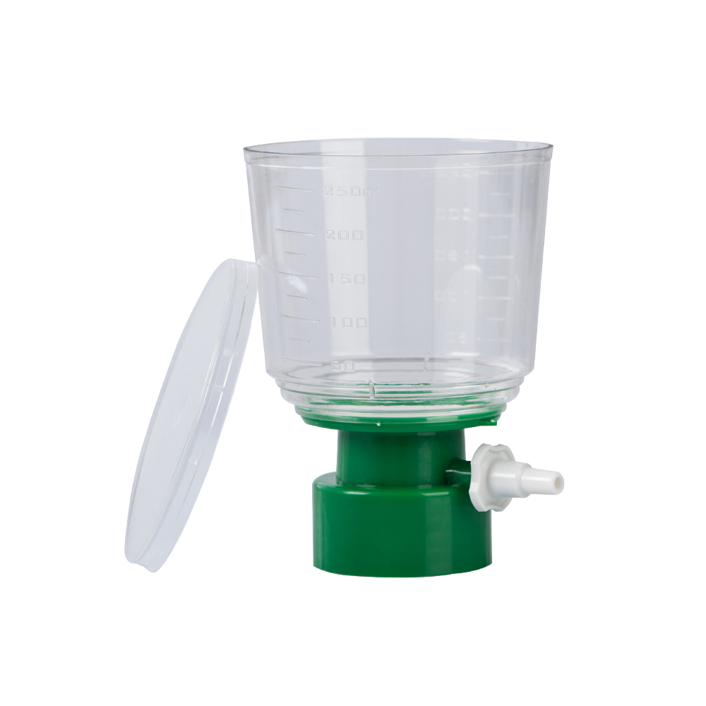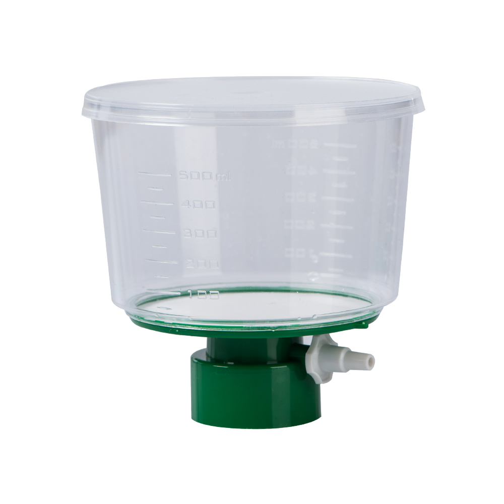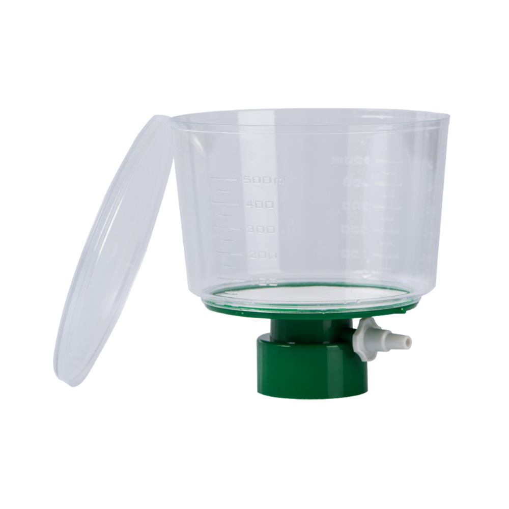 Sterylne systemy do filtracji z membraną z PES, do większych ilości cieczy np. mediów do hodowli komórkowych. Pakowane indywidualnie. Opakowanie zawiera 12 szt. filtrów z butelkami. Wygodne w użytkowaniu, butelkę z filtratem można przechowywać np. w lodówce.