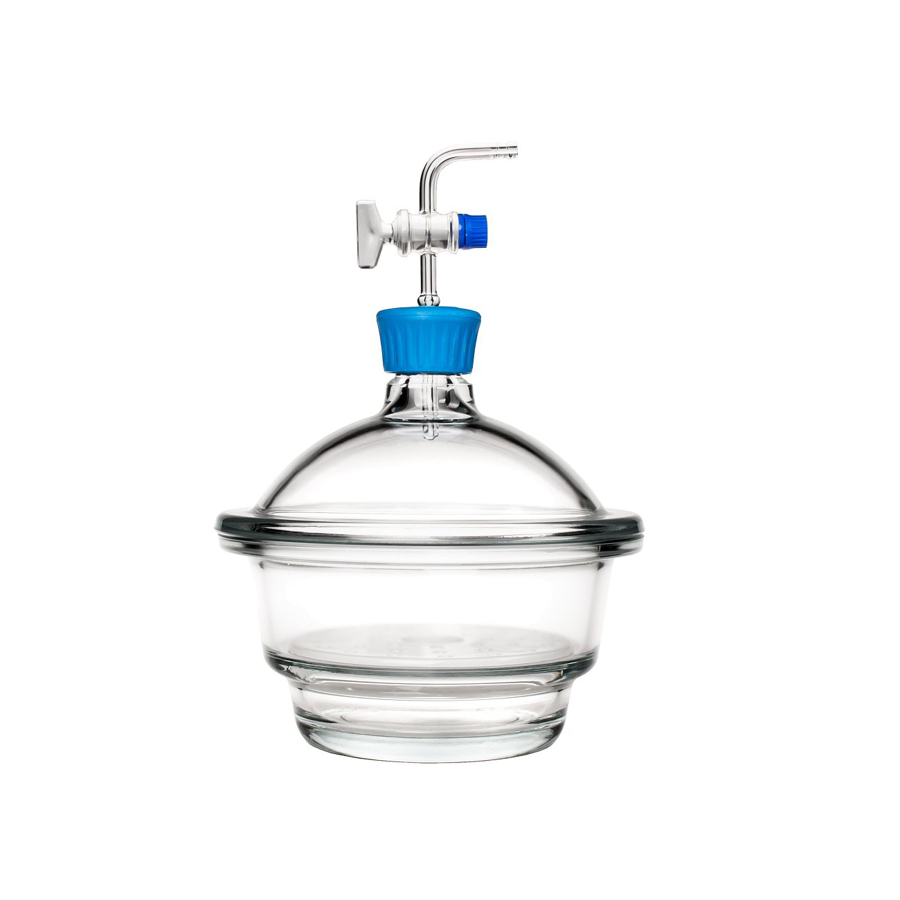 Eksykatory ze szkła Simax z zaworem i wkładem porcelanowym. Doskonale sprawdzają się do przechowywania i osuszania próbek wrażliwych na wilgoć. Wykonane ze szkła borokrzemowego odpornego na działanie wysokich temperatur oraz kwasów i zasad.