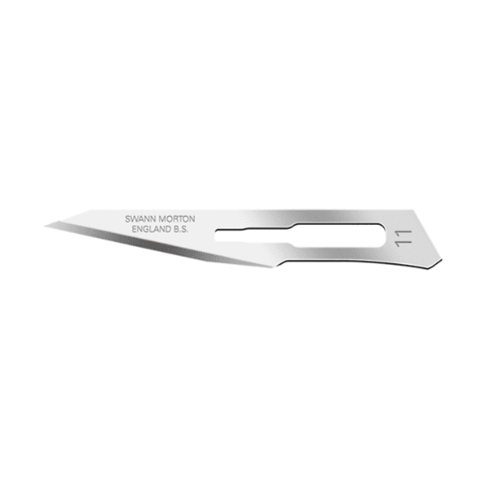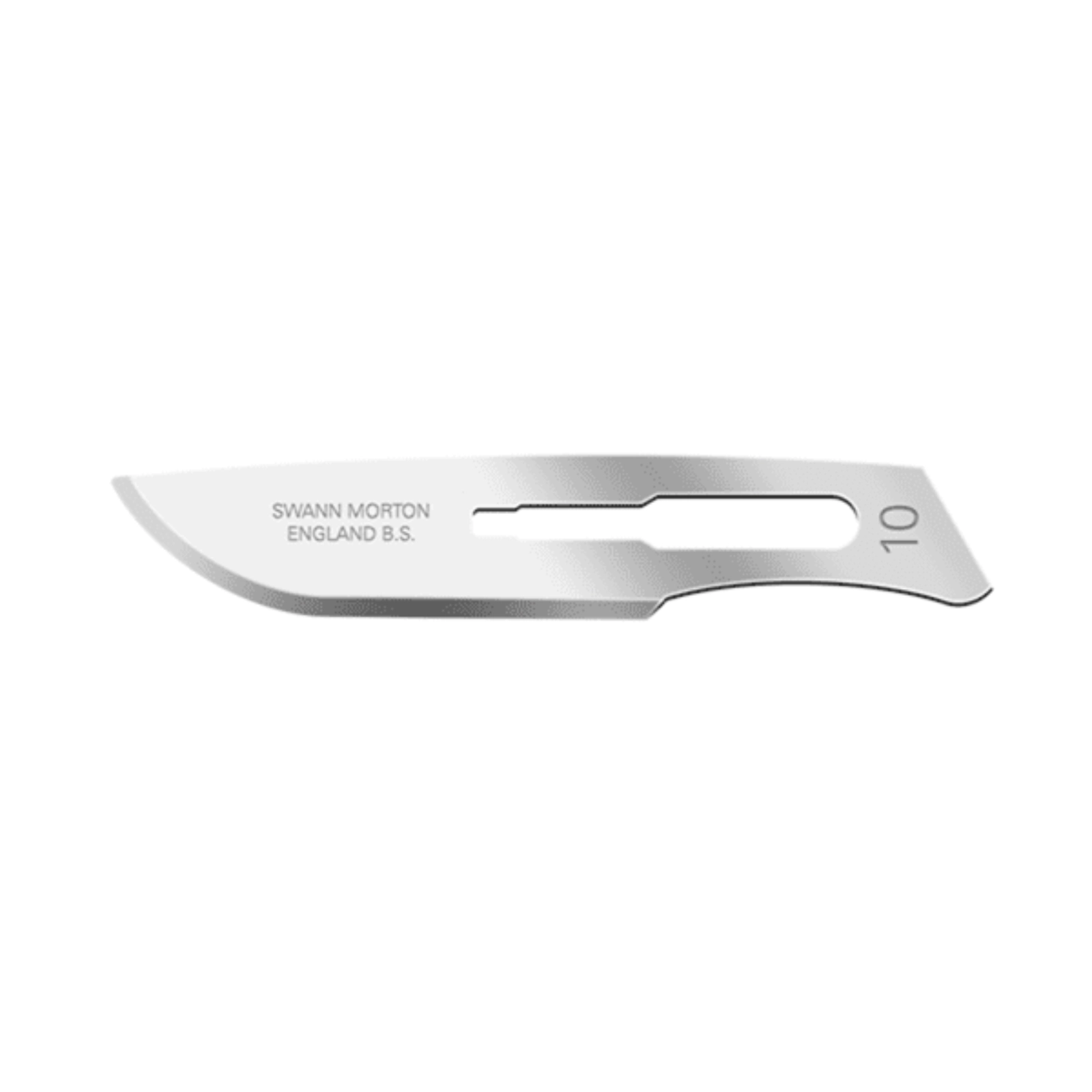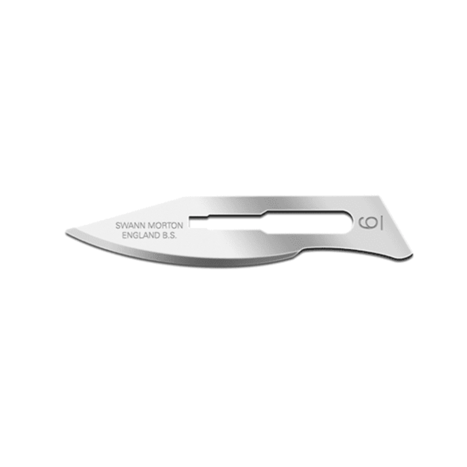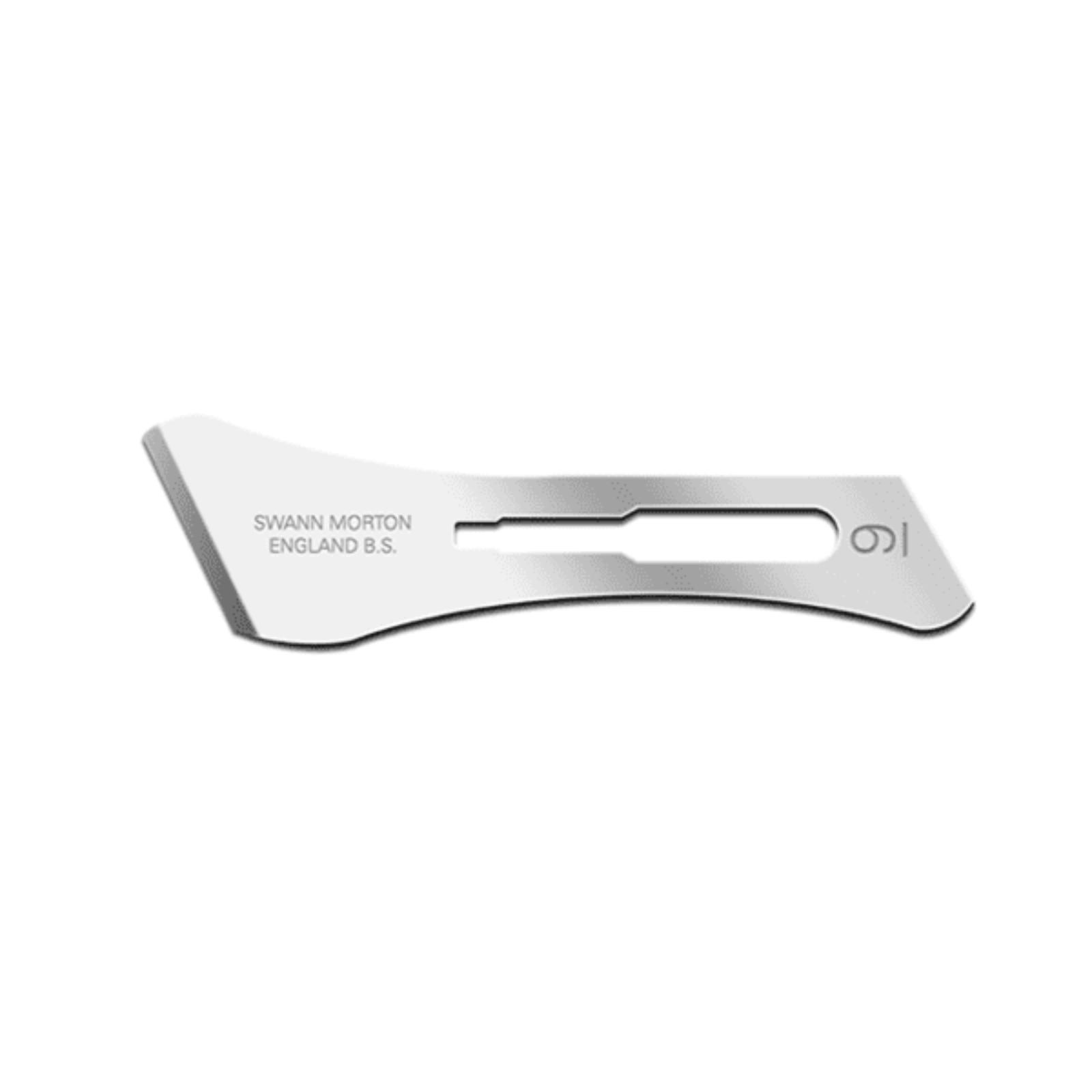 Ostrza do skalpeli kompatybilne z rękojeścią nr 3 marki Swann-Morton. Wykonane ze stali węglowej, sterylne.