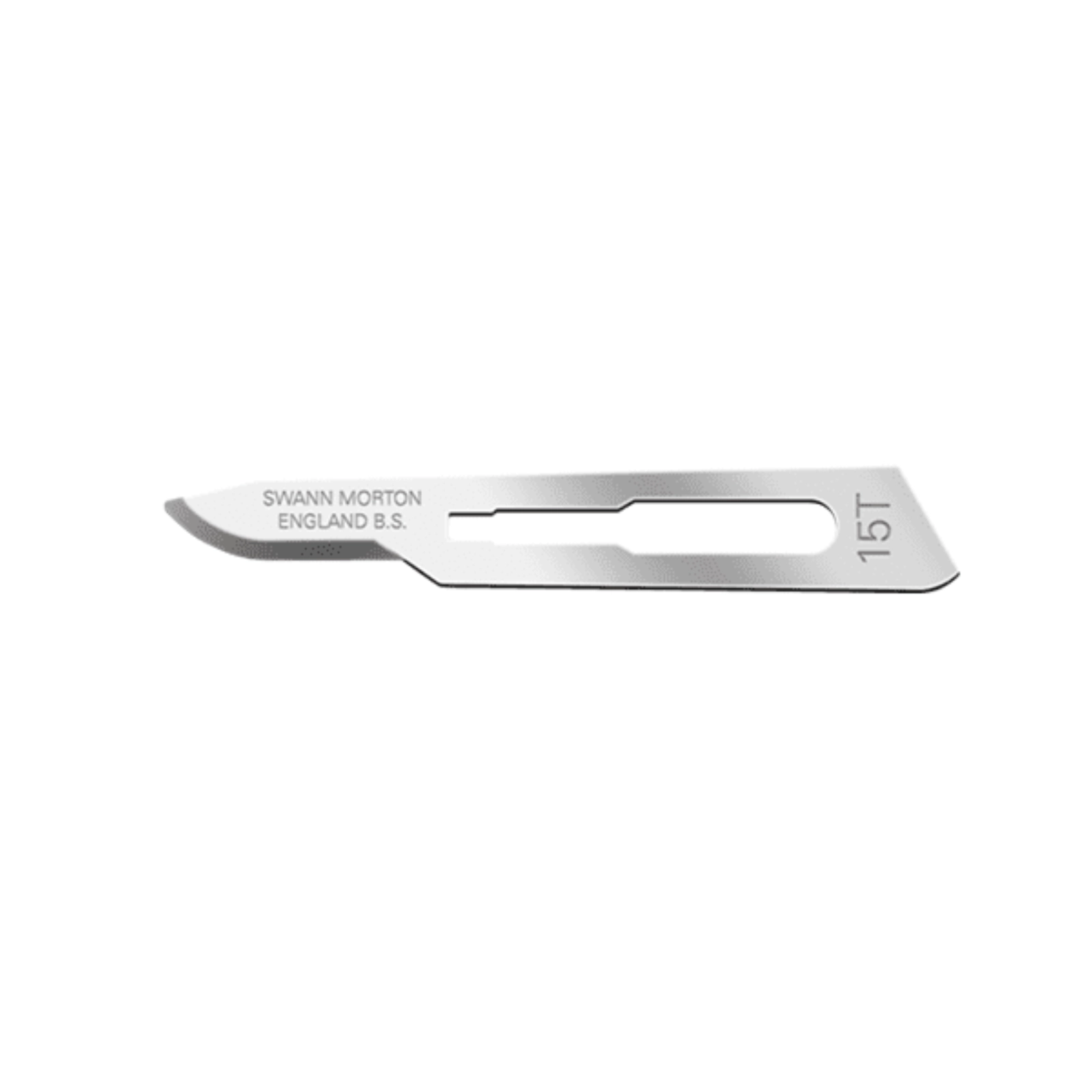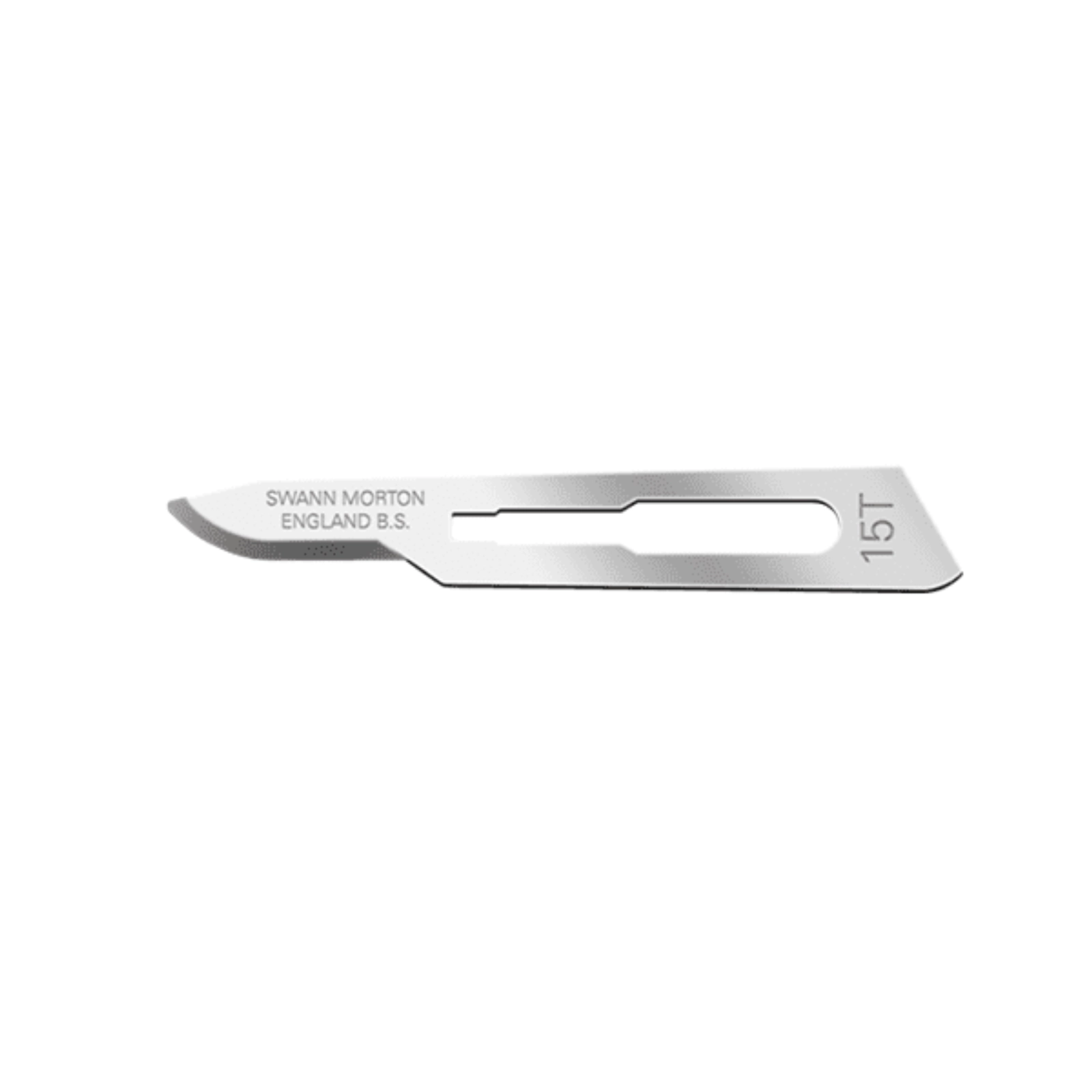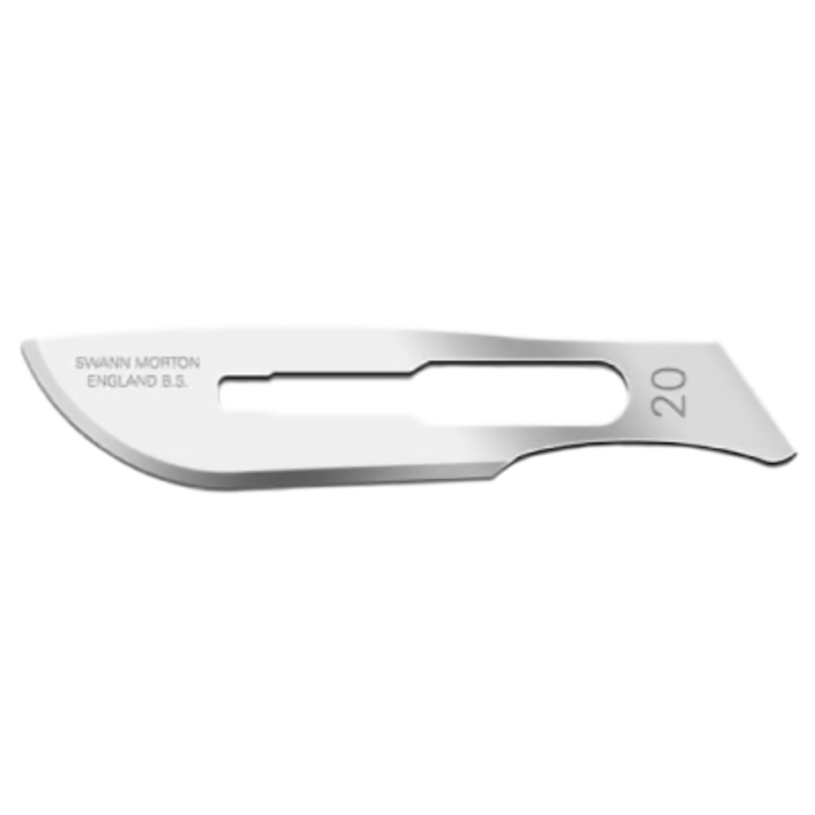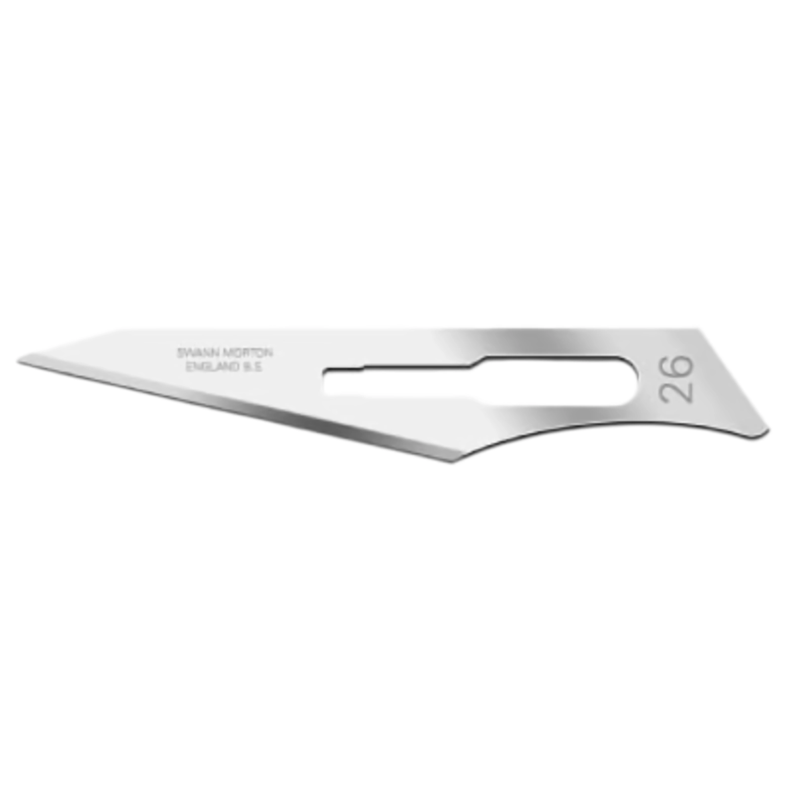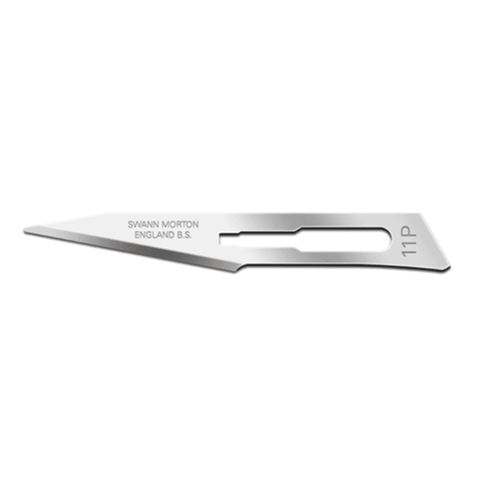 Ostrza do skalpeli kompatybilne z rękojeścią nr 3 marki Swann-Morton. Wykonane ze stali węglowej, sterylne.