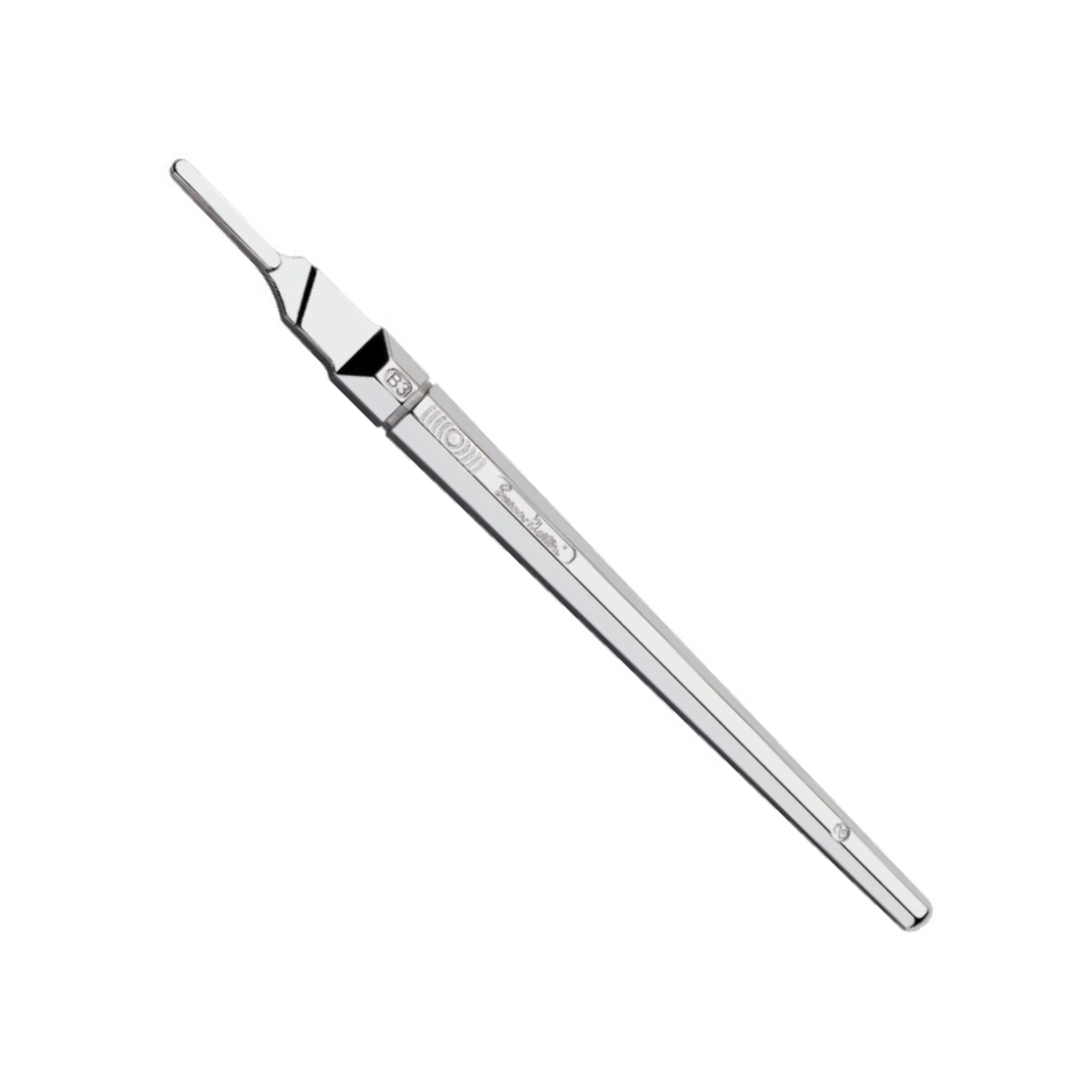 Uchwyty do skalpeli marki Swann-Morton. Oferujemy rękojeści o różnych wymiarach i kształtach: standardowe (nr 3, 4), wydłużone (nr 3L, 4L), szerokie (nr 5B, 6B), oraz zwężane ku dołowi (B3, 9). Uchwyty wykonano ze stali nierdzewnej. Ponadto rękojeści nr 3 i 4 mają wygrawerowaną skalę.