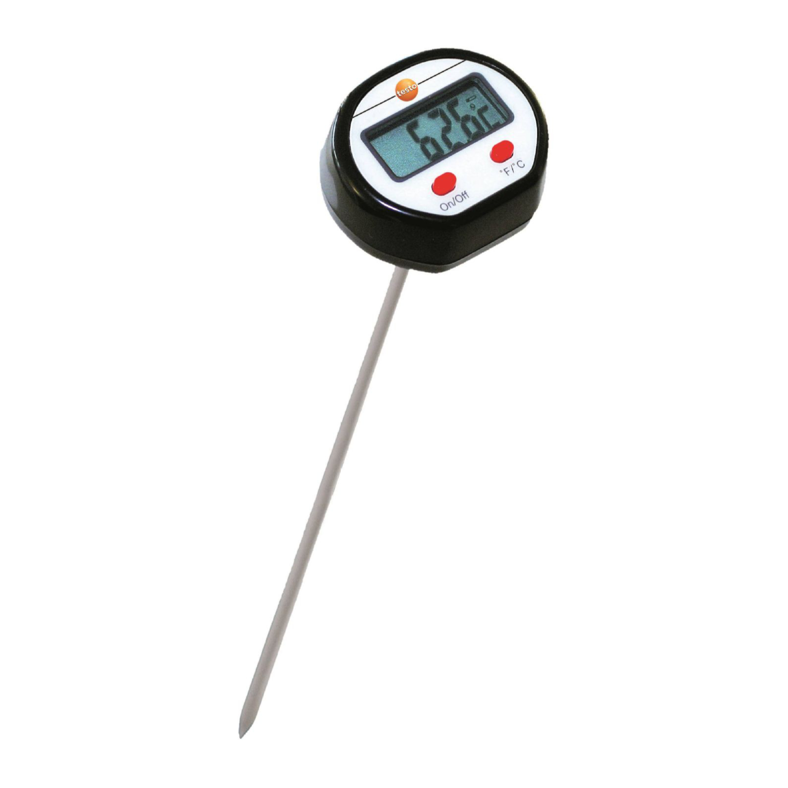 Minitermometr Testo z wydłużonym czujnikiem penetracyjnym jest idealny do na pomiarów wysokich temperatur w trudno dostępnych miejscach. Urządzenie wyposażone jest w ekran LCD i przycisk przełączający skalę. Termometr działa w zakresie pomiarowym od -50 do +250 °C.