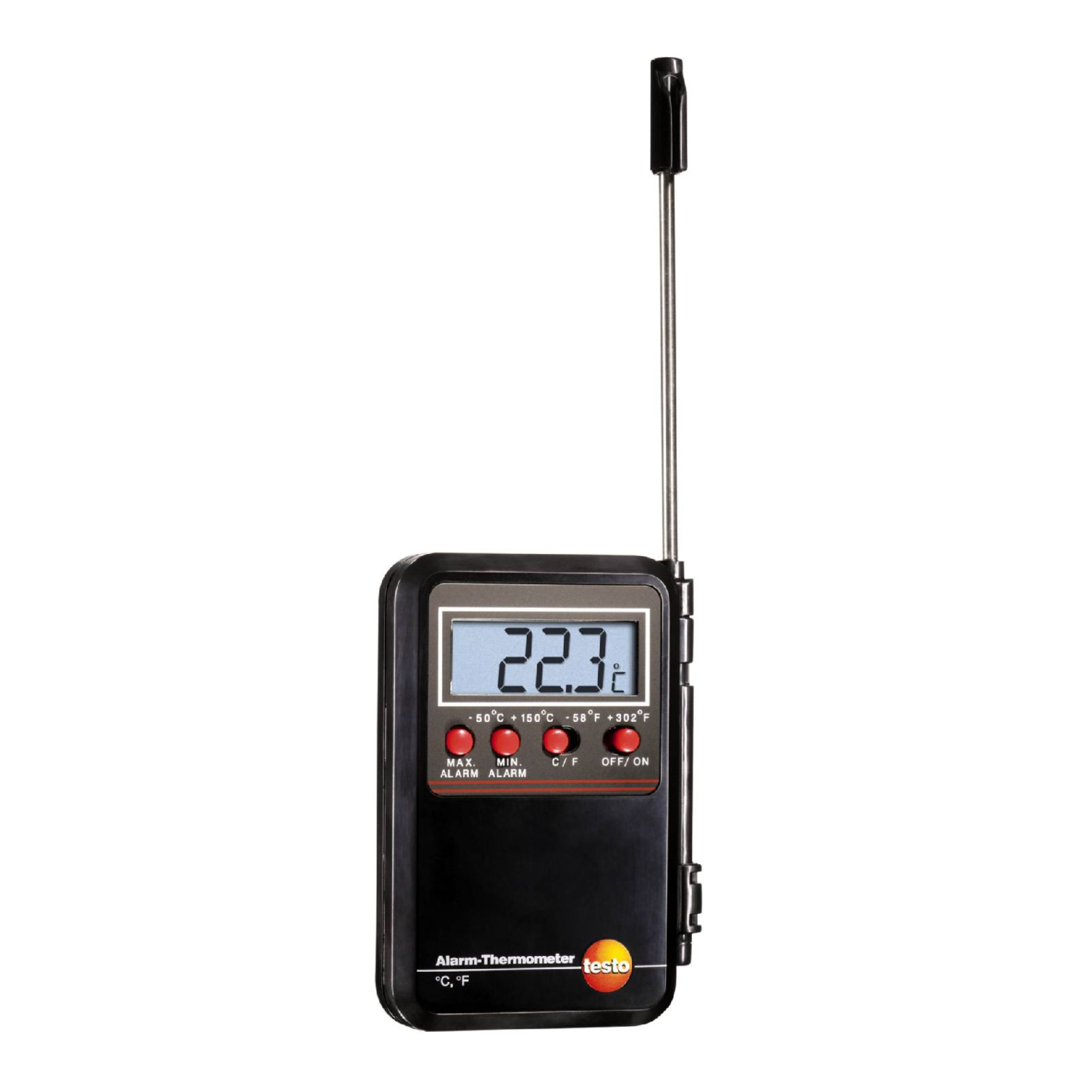 Uniwersalny mini termometr Testo z alarmem wyposażony jest w sondę. Posiada funkcję min/max. Służy do pomiaru temperatury w zakresie od -50 to 150 °C.