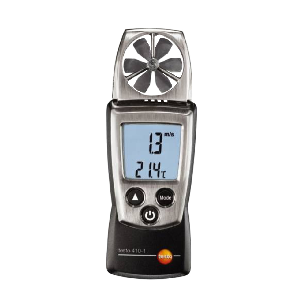 Anemometr wiatraczkowy Testo 410-2 pozwala na pomiar prędkości przepływu powietrza, temperatury oraz wilgotności względnej powietrza. Wyposażony w funkcję kalkulacji stopnia wychłodzenia spowodowanego przez wiatr, punktu rosy, temperatury mokrego termometru. Dodatkowo posiada funkcję uśredniania pomiaru, HOLD oraz max./min.