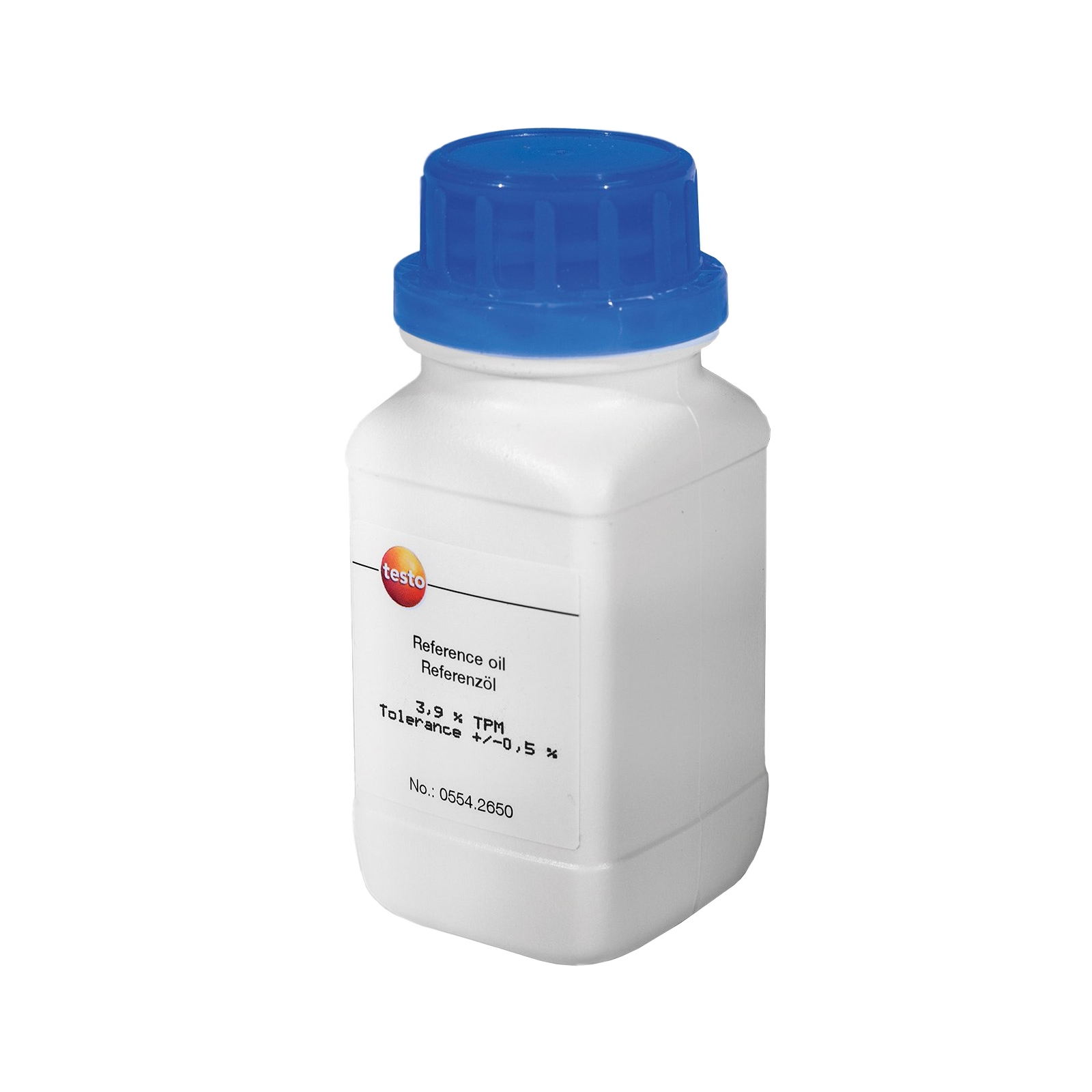 Olej referencyjny do testera jakości oleju spożywczego Testo 270 oferowany jest w butelce o pojemności 100 ml. Produkt przeznaczony do regularnej kalibracji i regulacji parametrów urządzenia Testo 270.
