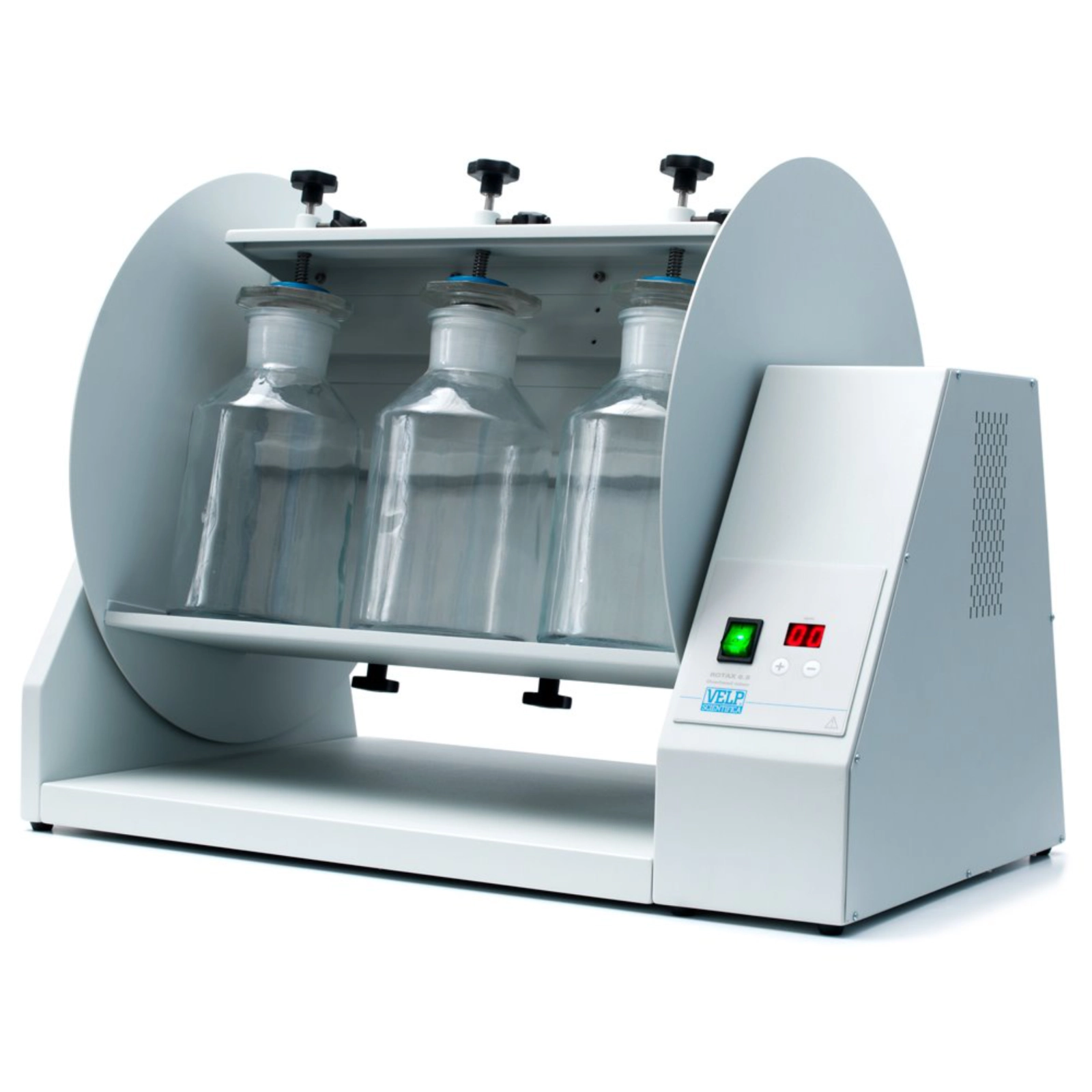 Mieszadło rotacyjne Rotax 6.8 firmy Velp służy do analizy osadów ściekowych np. do oceny rozpuszczalności zanieczyszczeń w wodzie. Rotator przyda się w oczyszczalniach ścieków, zakładach utylizacji odpadów, laboratoriach analizy środowiskowej. Prędkość obrotów można regulować w zakresie 0-30 obr./min (co 1 obr./min). Rotator jest dopasowany do 6 butelek o pojemności 2 l. Dodatkowo można dokupić adapter, który umożliwia mieszanie 8 butelek o pojemności 1 l.