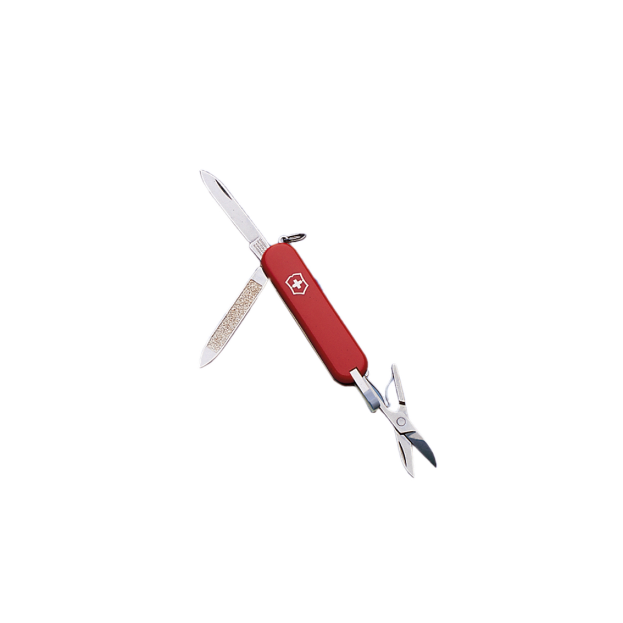 Zawiera: nóż, pilnik, nożyczki, pincetę i wykałaczkę.