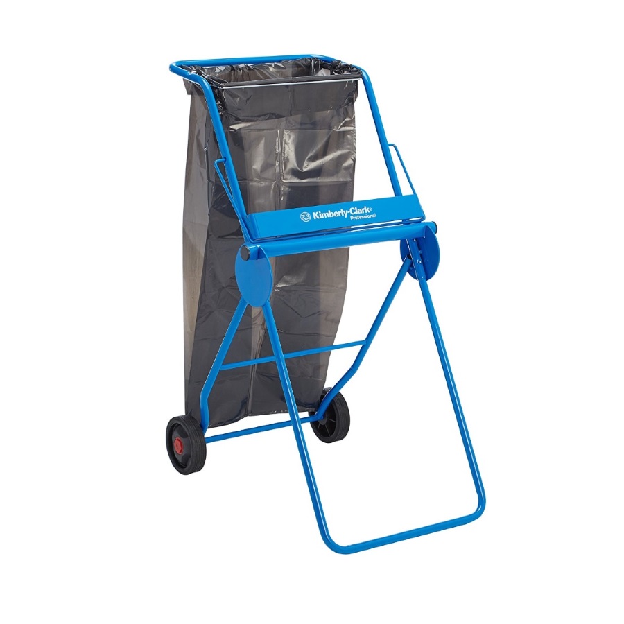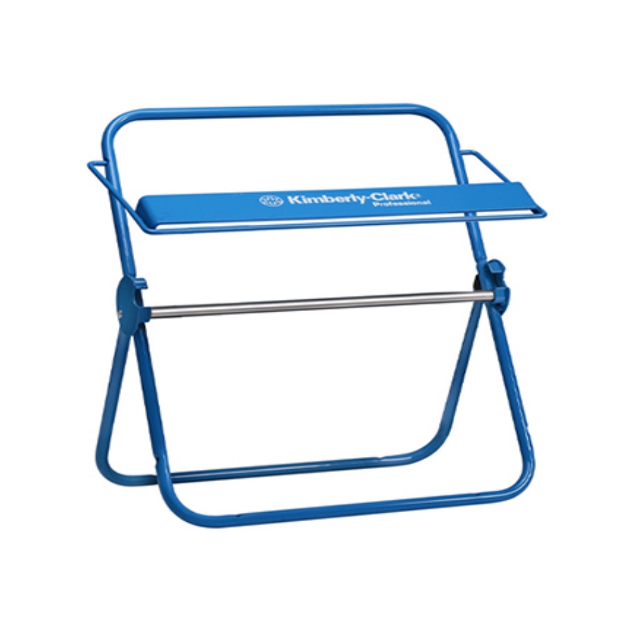 Statywy przeznaczone do dużych rolek czyściwa (pasują do wszystkich dużych rolek czyściw Kimberly-Clark). Wykonane z metalu, malowanego na niebiesko.