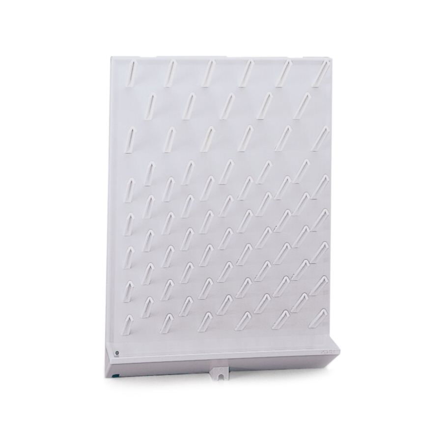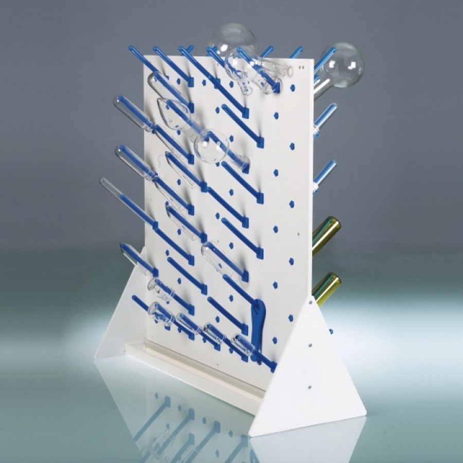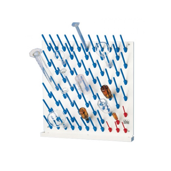 Płyty przeznaczone do suszenia kolb i probówek. Wykonane ze stali pokrytej tworzywem sztucznym (PE). Z możliwością ustawienia na blacie, bądź zawieszenia na ścianie.