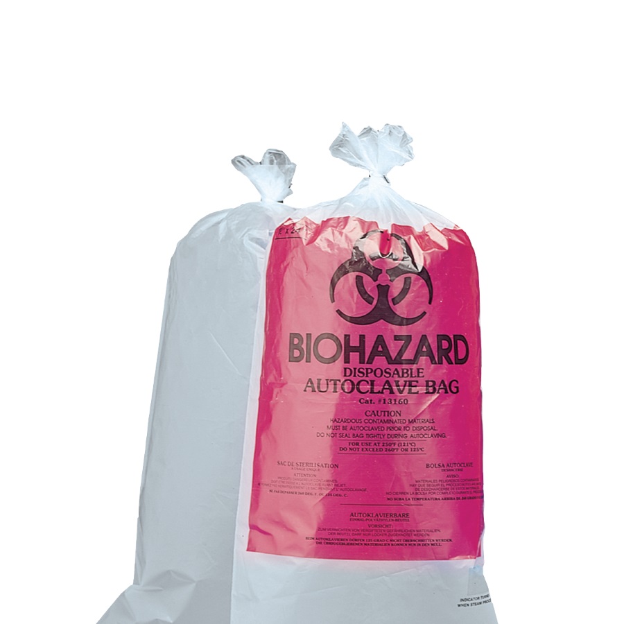 Worki autoklawowalne wykonane z polipropylenu. Przeźroczyste, z nadrukowanym napisem ostrzegawczym „Biohazard”. Idealne do stosowania w laboratoriach generujących odpady biologicznie niebezpieczne, np. zanieczyszczone probówki, szalki, pojemniki. Autoklawowalne (w czasie autoklawowania worki muszą być otwarte). Odporne na temperaturę do +140°C.