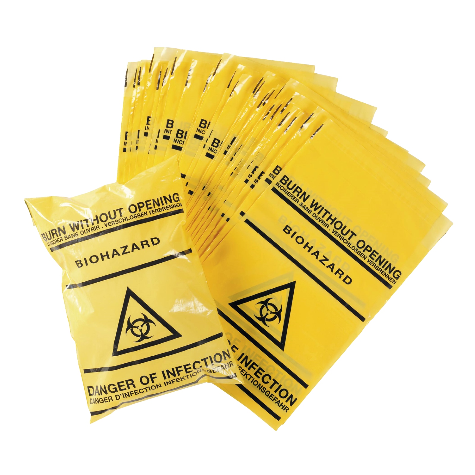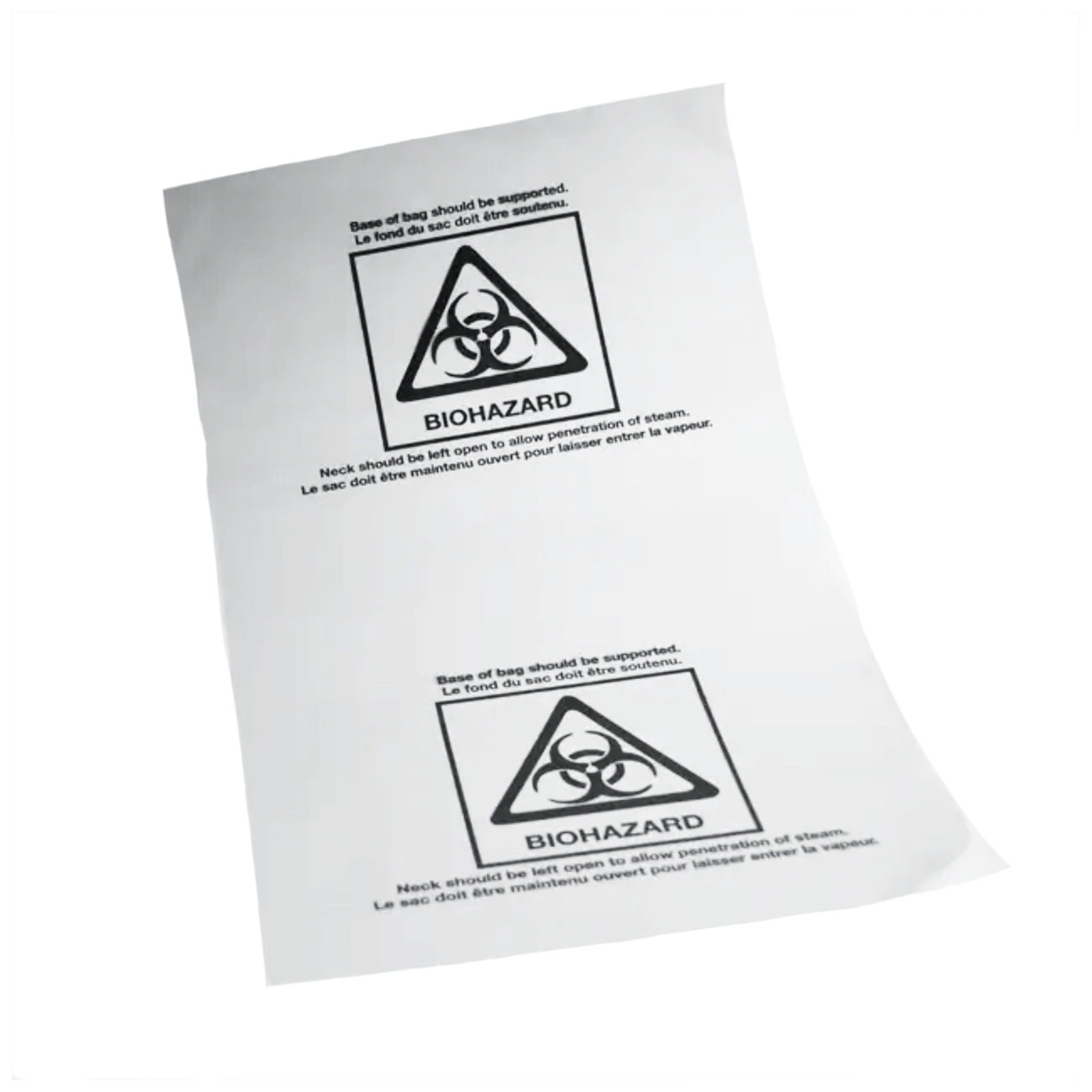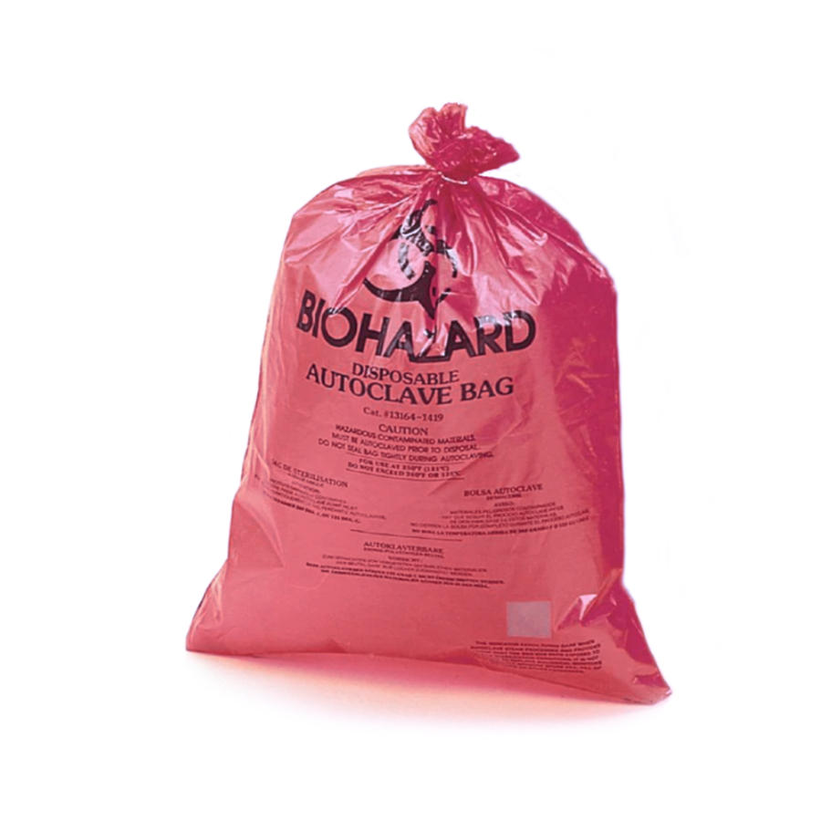 Worki jednorazowe na odpady wykonane z polipropylenu. Z mocnym szwem na spodzie. Z nadrukiem BIOHAZARD. Autoklawowalne w 134°C . Przeznaczone do sterylizacji i usuwania niebezpiecznych materiałów.