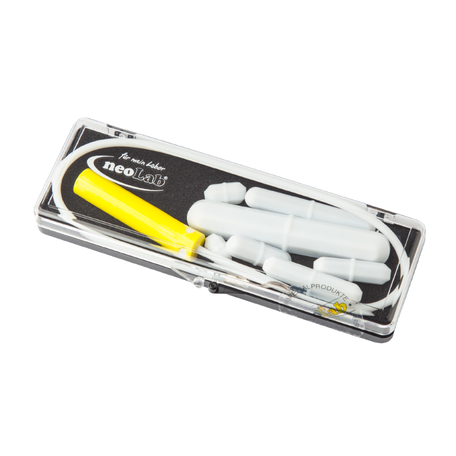 Owalne mieszadełka magnetyczne pokryte powłoką z wysokiej jakości teflonu. Doskonale nadają się do naczyń z okrągłym dnem. Dostarczane w pudełku z tworzywa sztucznego.