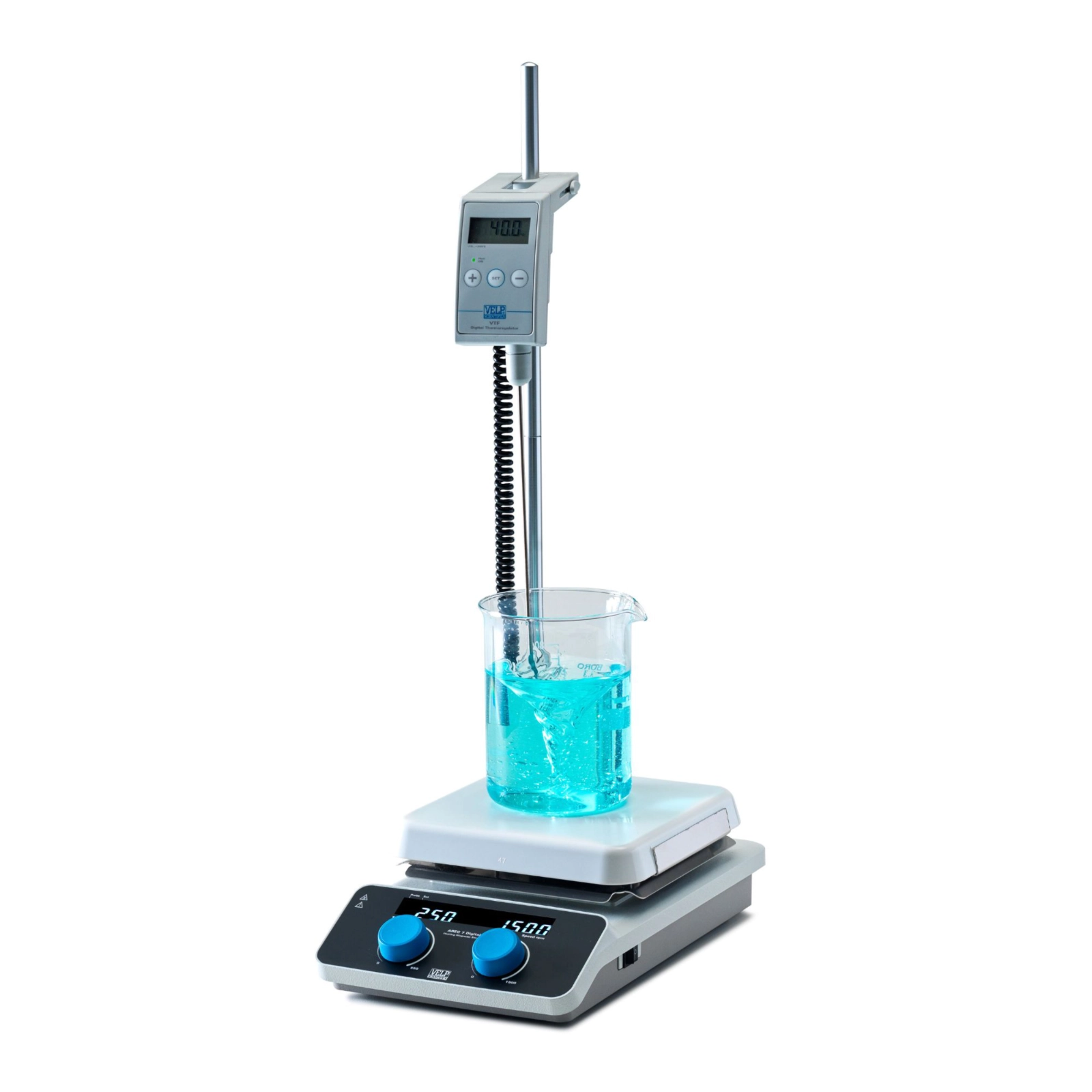 Cyfrowe mieszadło magnetyczne z płytą grzejną wykonaną ze szkła ceramicznego. Wyświetlacz LED do ustawiania i wskazywania temperatury oraz prędkości obrotowej. Maksymalna moc grzania 550°C. Bezstopniowa regulacja prędkości obrotowej w zakresie 100-1500 obr./min. Maksymalna objętość mieszanej cieczy do 10 l. Powierzchnia płyty grzejnej odporna na korozję i łatwa w czyszczeniu. Urządzenie może być stosowane z mieszadełkami magnetycznymi o długości do 80 mm.