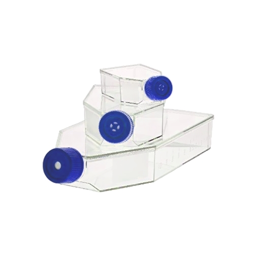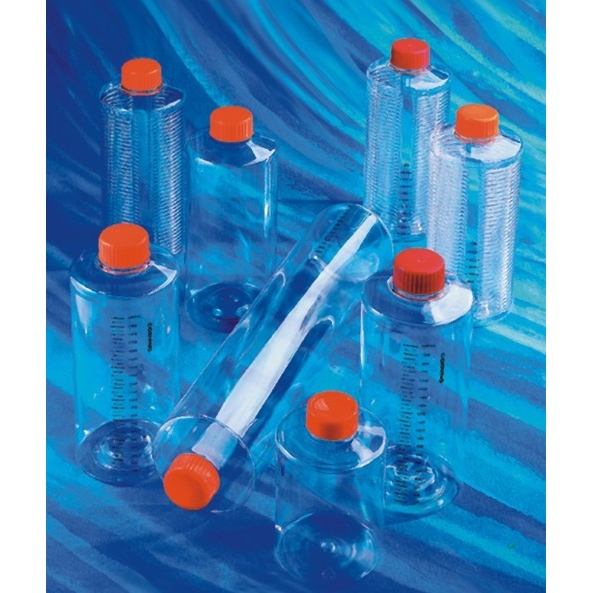 Butelki do hodowli firmy Corning wykonane z najwyższej jakości przejrzystego polistyrenu. Wyposażone w wentylowane zakrętki z membraną o średnicy porów 0,2 µm, umożliwiającą swobodną, sterylną wymianę gazową, jednocześnie minimalizującą ryzyko kontaminacji. Idealnie nadają się do długotrwałego stosowania w inkubatorach CO2.
