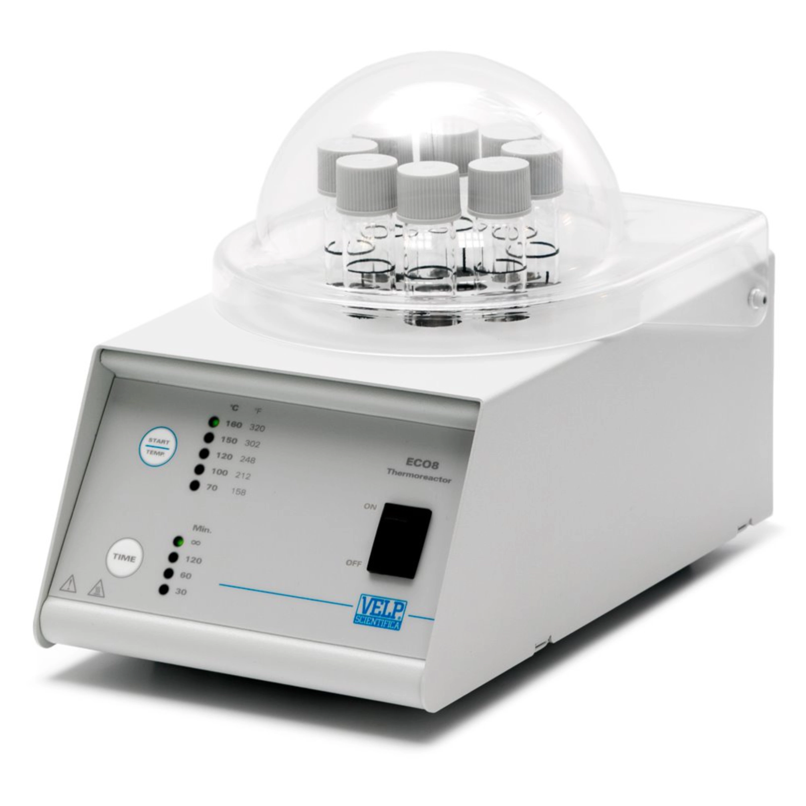 Termoreaktory ECO 8 i ECO 25 firmy Velp służące do mineralizacji próbek jako wstęp do analiz: CHZP, poziomu azotu i fosforu ogólnego. Znajdują zastosowanie w jednostkach zajmujących się analizą ścieków i osadów. ECO 8 i ECO 25 posiadają funkcję regulacji czasu pracy: 30, 60, 120 min oraz tryb pracy ciągłej. Istnieje możliwość ustawienia temperatury na 70, 100, 120, 150 i 160 °C. ECO 8 jest dopasowane do 8 probówek o średnicy 16 mm i jednej probówki o śr. 22 mm. ECO 25 posiada 25 otworów na próbówki o średnicy 16 mm.