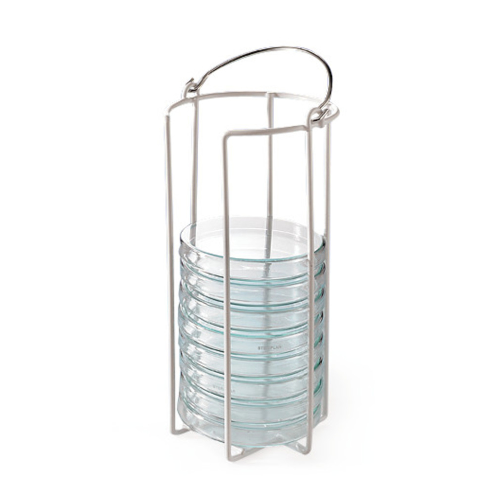 Praktyczne stojaki przeznaczone do przechowywania i bezpiecznego przenoszenia szalek Petriego. Wykonane ze stali nierdzewnej. Przeznaczone do przechowywania 36 szalek o różnej średnicy (16 szalek dla Ø 150 mm). Z możliwością ustawiania piętrowego. Autoklawowalne.