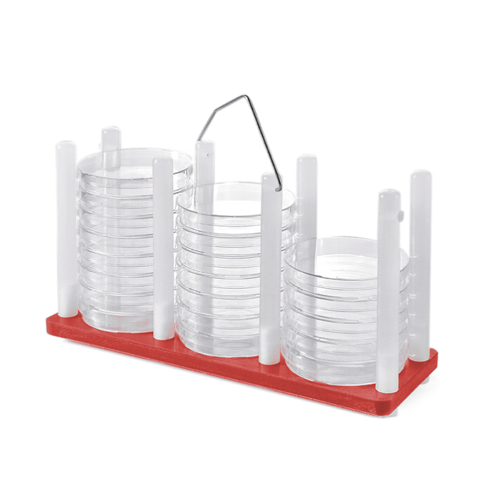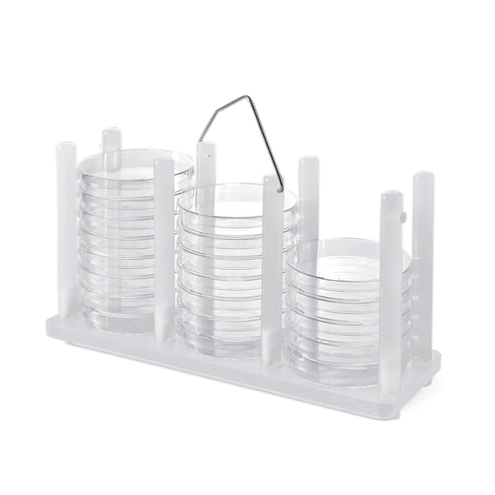 Statywy na szalki Petriego – z polipropylenu (PP), wyposażone w uchwyty. Wykorzystywane do wygodnego przenoszenia większych ilości płytek Petriego. Wykonane z dobrej jakości tworzywa, mogą być autoklawowalne.
