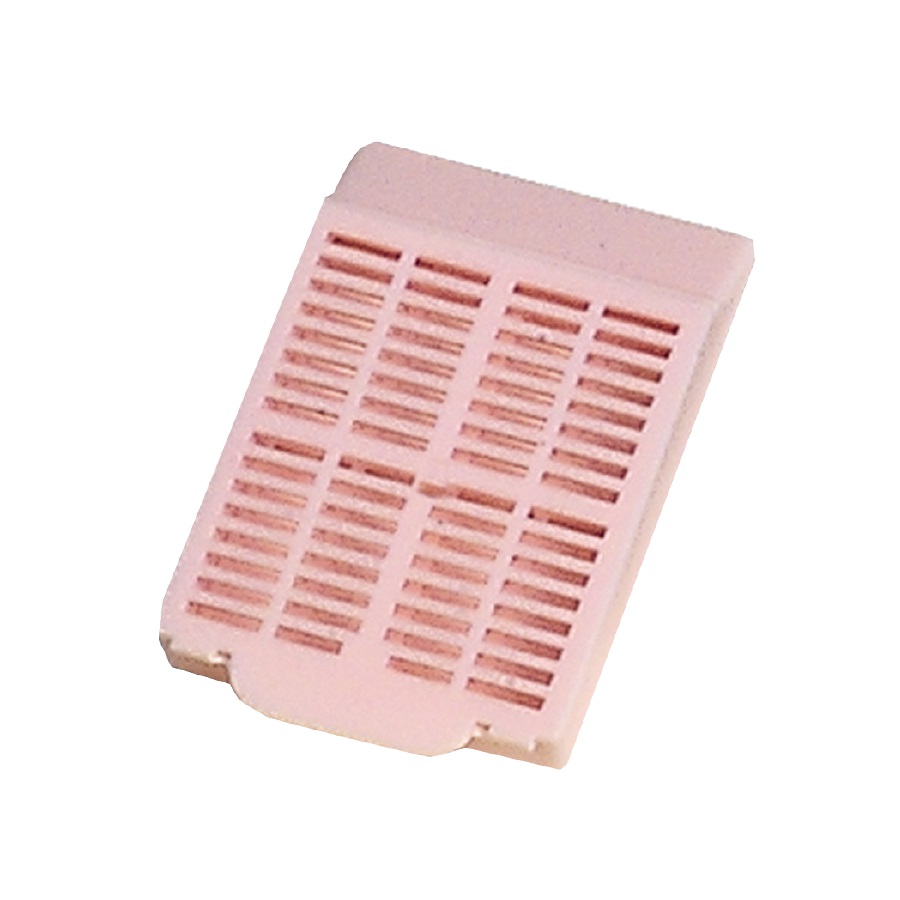 Wykonane z polimeru o wysokiej gęstości. Przeznaczone do zatapiania lub przechowywania preparatów tkankowych. Prostokątne otwory o wielkości 1 mm usprawniają wymianę cieczy i optymalizują zatapianie. W celu zamknięcia kasetki, należy odłamać załączoną pokrywkę, a następnie nałożyć ją i zatrzasnąć na dolnej części kasetki. Kasetki mogą być wielokrotnie otwierane i zamykane. Odporne na działanie rozpuszczalników. Z dużym polem na opis.