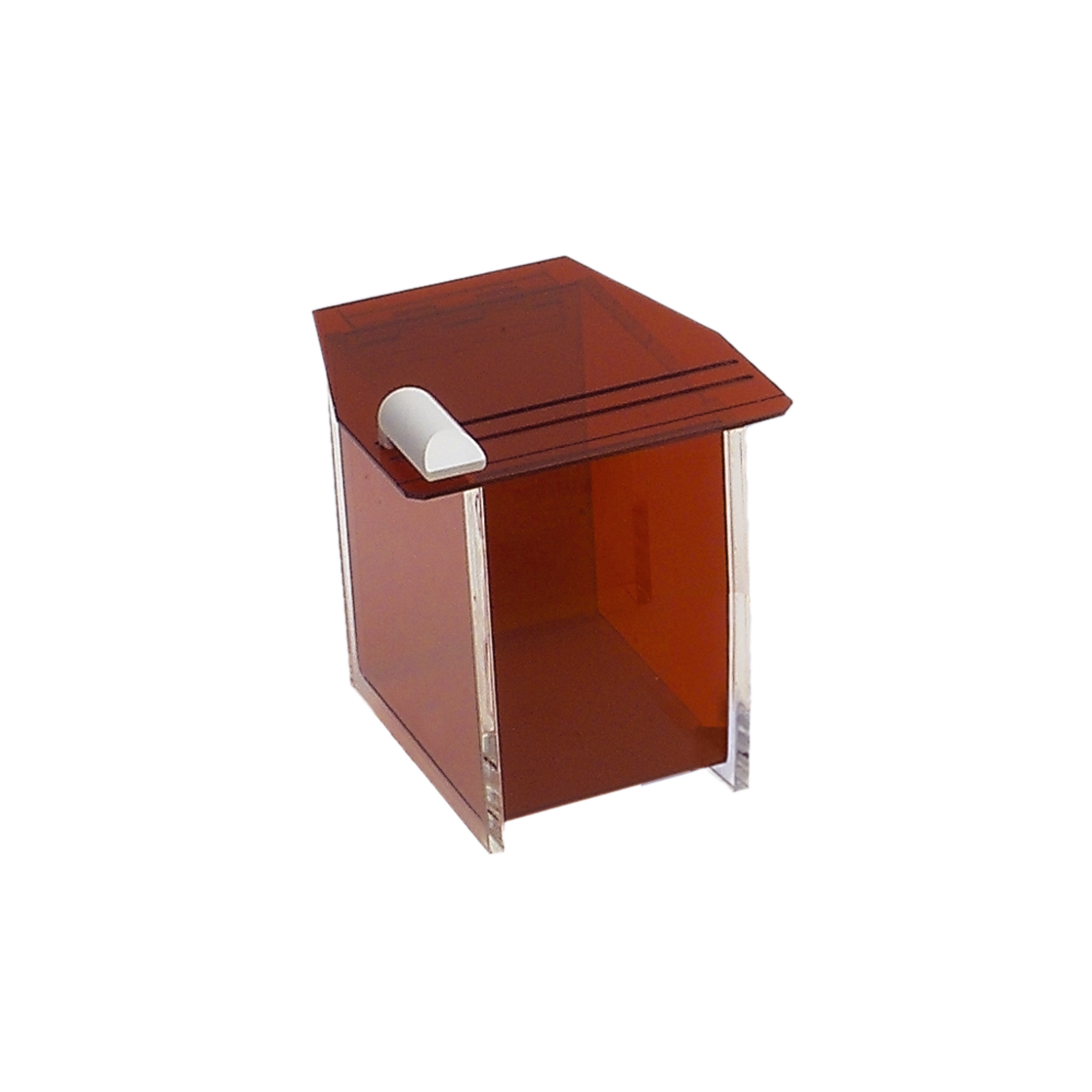 Wykonany z kolorowego szkła plexi. Przeznaczony na standardowe rolki Parafilmu® o szer. 10 cm. Z przykrywką i nożem tnącym.
