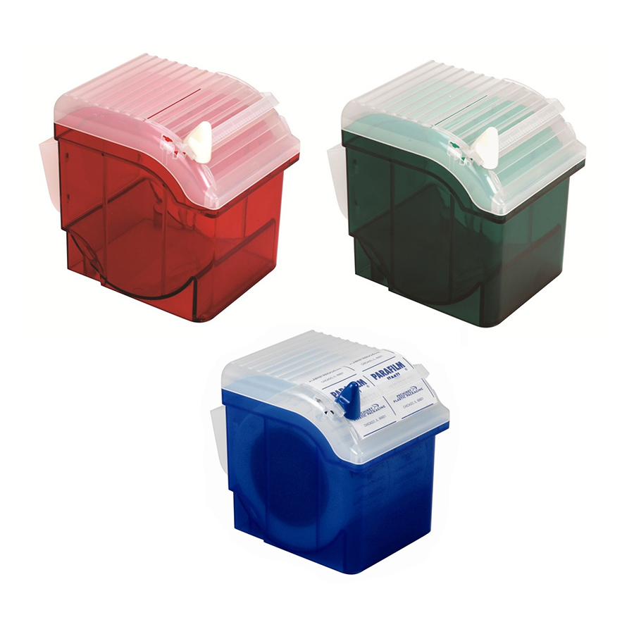 Pojemnik na Parafilm® wykonany z transparentnego tworzywa sztucznego ABS. Nadaje się także do etykiet Tough-Tags® na rolce. Przeznaczony do bezpiecznego odcinania kawałków Parafilmu®. Odpowiedni do rolek o szerokości do 10 cm.