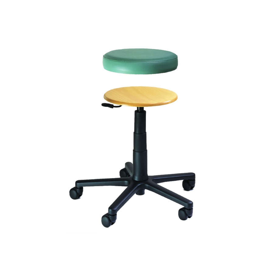 Praktyczny taboret wykonany z tworzywa sztucznego wzmocnionego włóknem szklanym. Przydatny w biurze, laboratorium, praktyce lekarskiej itp. Stabilna podstawa z 6 rolkami obrotowymi. Siedzisko obite miękką warstwą materiału zmywalnego.