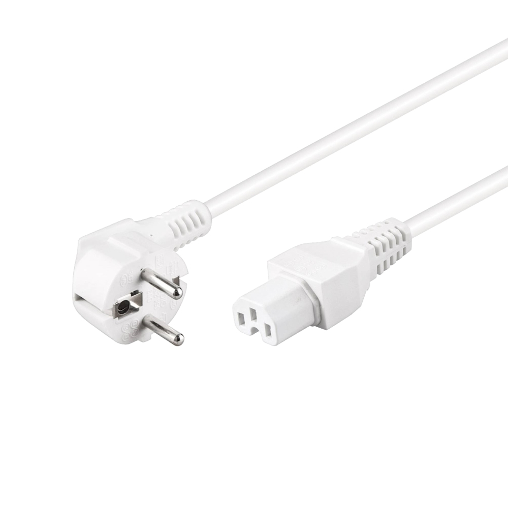Przewód z wtyczką ze stykiem ochronnym. Kolor biały. Długość kabla: 2,0 m. Przekrój: 0,75 mm². Odpowiedni do większości urządzeń laboratoryjnych. Obciążenie do 16 A przy 230 V.