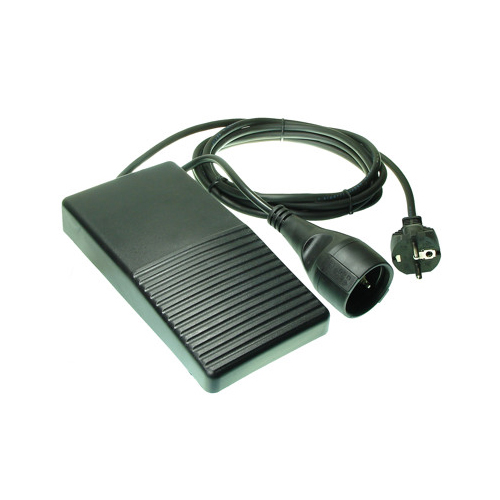 Włącznik pedałowy z kablem zasilającym i gniazdkiem na 230 V. Przeznaczony do włączania i wyłączania urządzeń elektrycznych. Gniazdko pozostaje tak długo pod napięciem, jak długo naciskany jest pedał. W ten sposób można włączać lub wyłączać urządzenie w zależności od potrzeb.