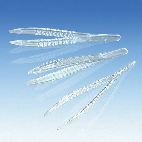 Pincety jednorazowe wykonane z PS. Przeźroczyste. Posiadają anatomiczny kształt. Końcówka ząbkowana. Pincety sterylne są pakowane indywidualnie.