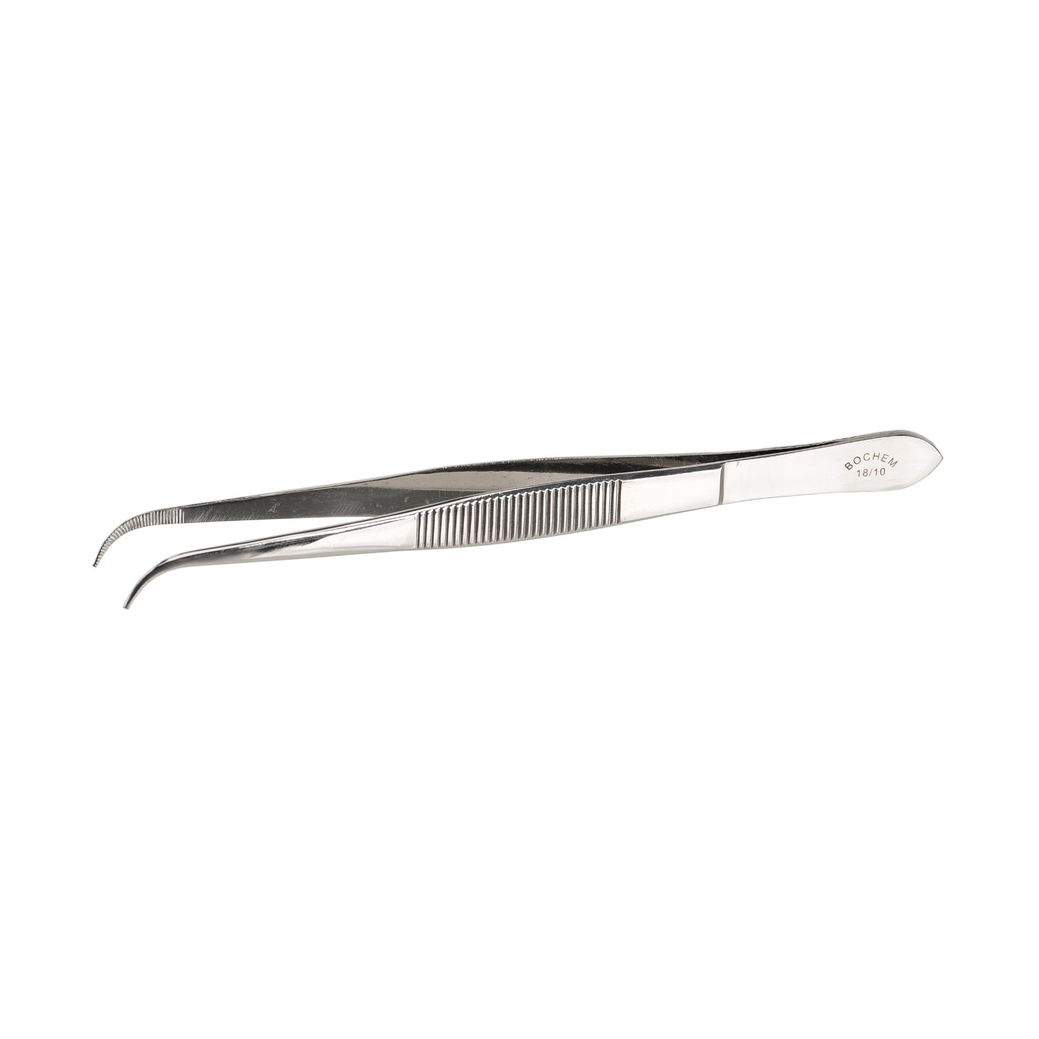 Pincety firmy Bochem wykonane ze stali szlachetnej 18/10. Dzięki zagiętym, ostrym końcom doskonałe do precyzyjnych prac. Żłobienia na końcach gwarantują pewny chwyt. Dostępne pincety o dł. od 105 mm do 200 mm.