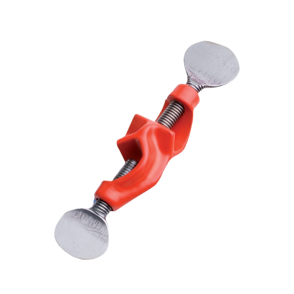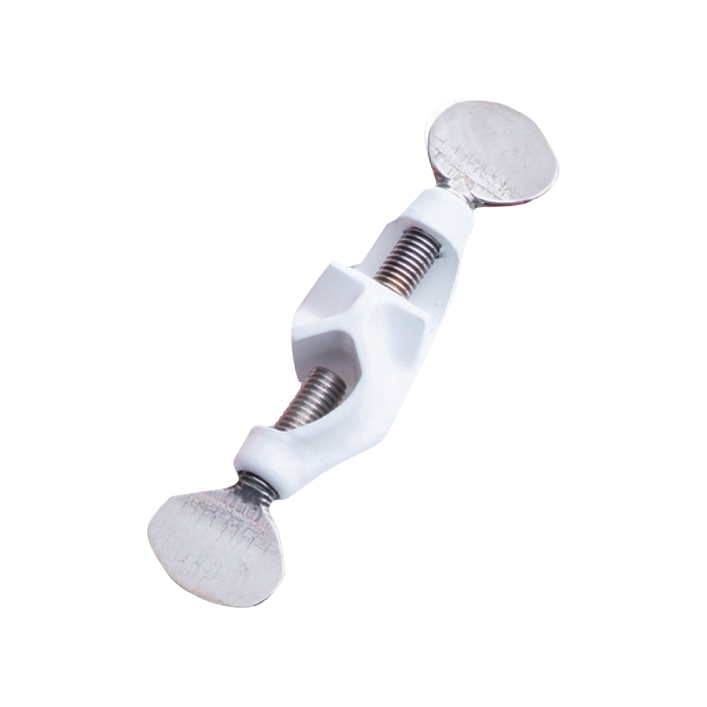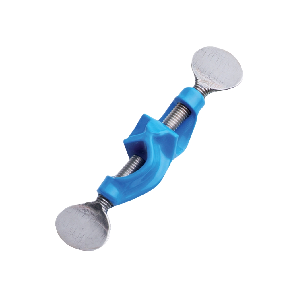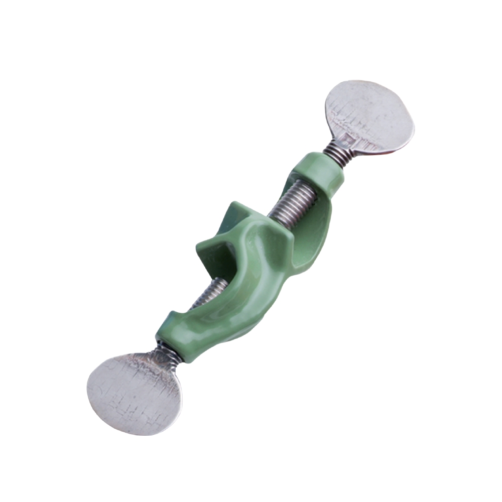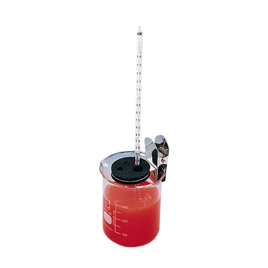 Zaciskacz laboratoryjny przystosowany do szybkiego mocowania probówek laboratoryjnych, czujników pomiaru temperatury w zlewkach, kolbach Erlenmeyera i szklanych wannach. Płytka wykonana z tworzywa sztucznego zawiera pięć otworów o różnej średnicy. Elementy metalowe zabezpieczone są przed korozją.