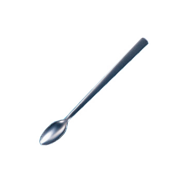 Łyżeczka o podłużnym kształcie. Trzonek spłaszczony. Wykonana ze stali szlachetnej. Autoklawowalna.