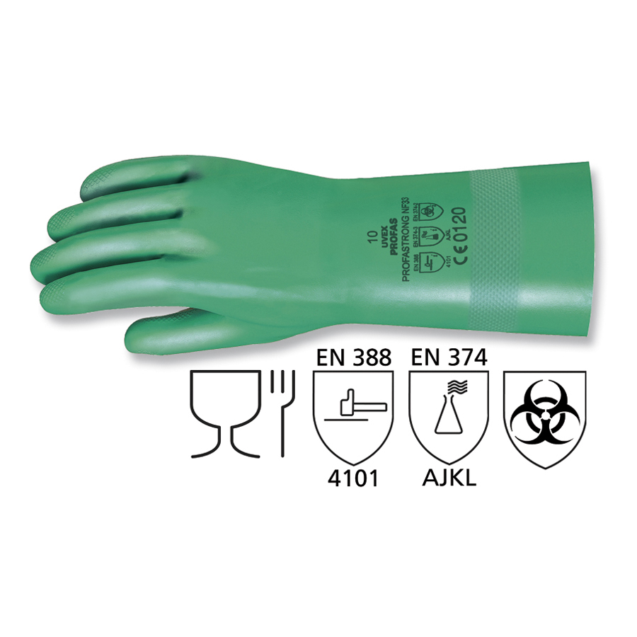 Rękawice ochronne III kategorii (ochrona przed wysokim ryzykiem). Zapewniają pełną ochronę przed chemikaliami wg EN 374, są odporne na rozpuszczalniki, paliwa, oleje i tłuszcze. Doskonała ochrona przed przecięciami i ukłuciami. Z antybakteryjną powłoką wewnętrzną zabezpieczającą przed chorobami skórnymi (wysypkami, wypryskami i grzybicami). Antystatyczne.
