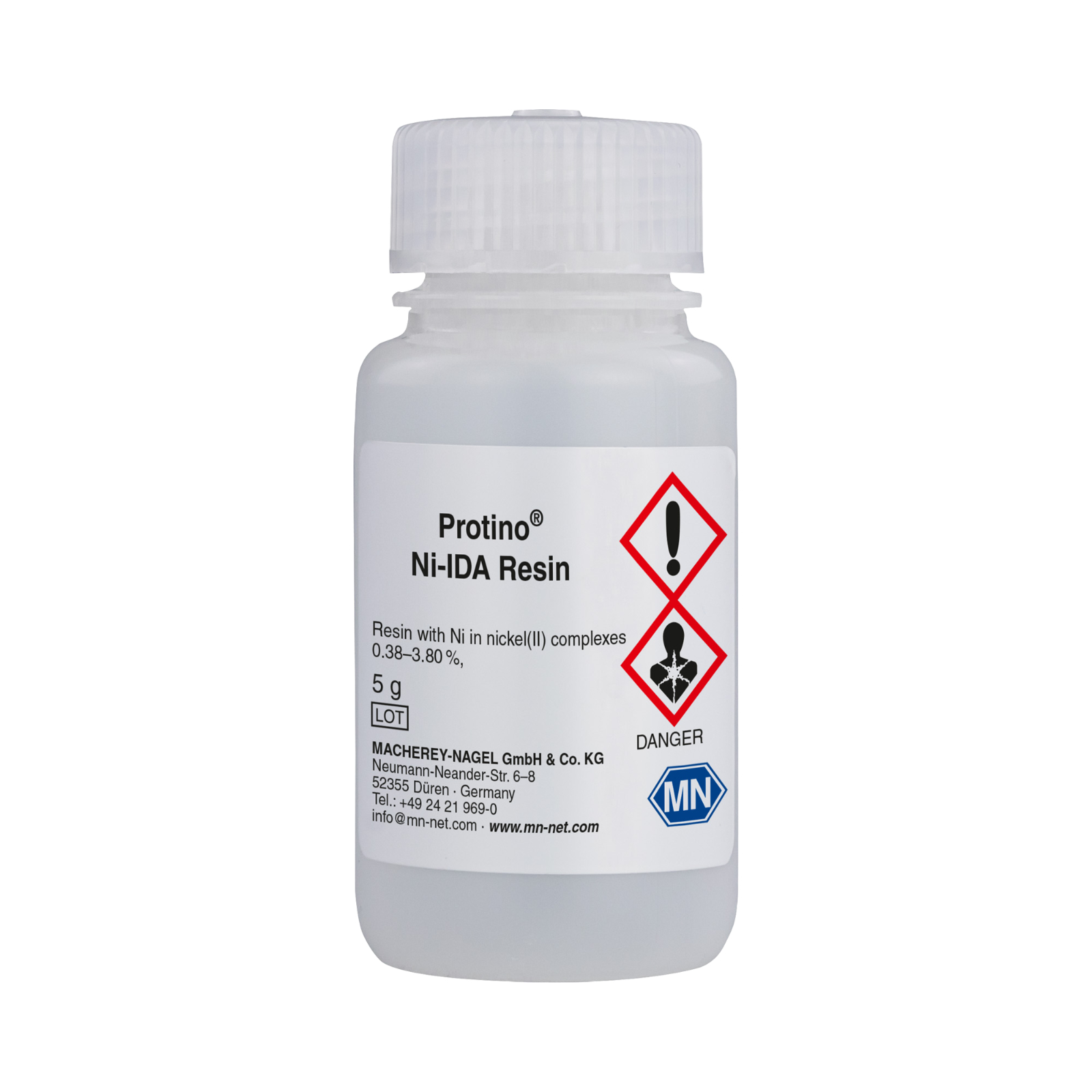 Żywica Protino® Ni-IDA – suchy, sypki materiał, wymagający przechowywania w temperaturze pokojowej. Jako grupy chelatujące wykorzystano tu IDA (reszty kwasu iminodioctowego) posiadające trzy miejsca wiązania. Umożliwia to oczyszczanie białek z wysoką wydajnością nawet z rozcieńczonych próbek i uzyskiwanie wysokich stężeń białka.